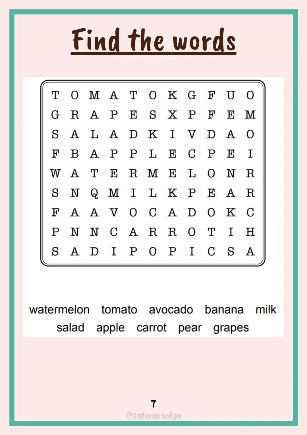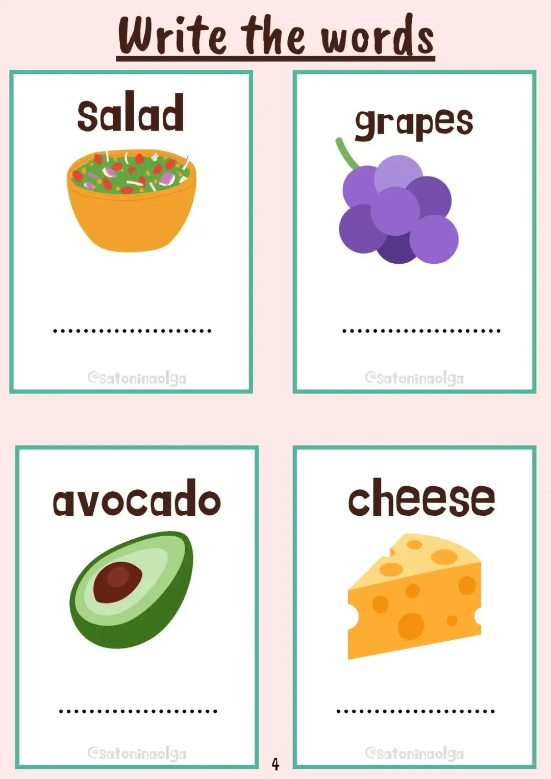 FOOD食物作业纸
