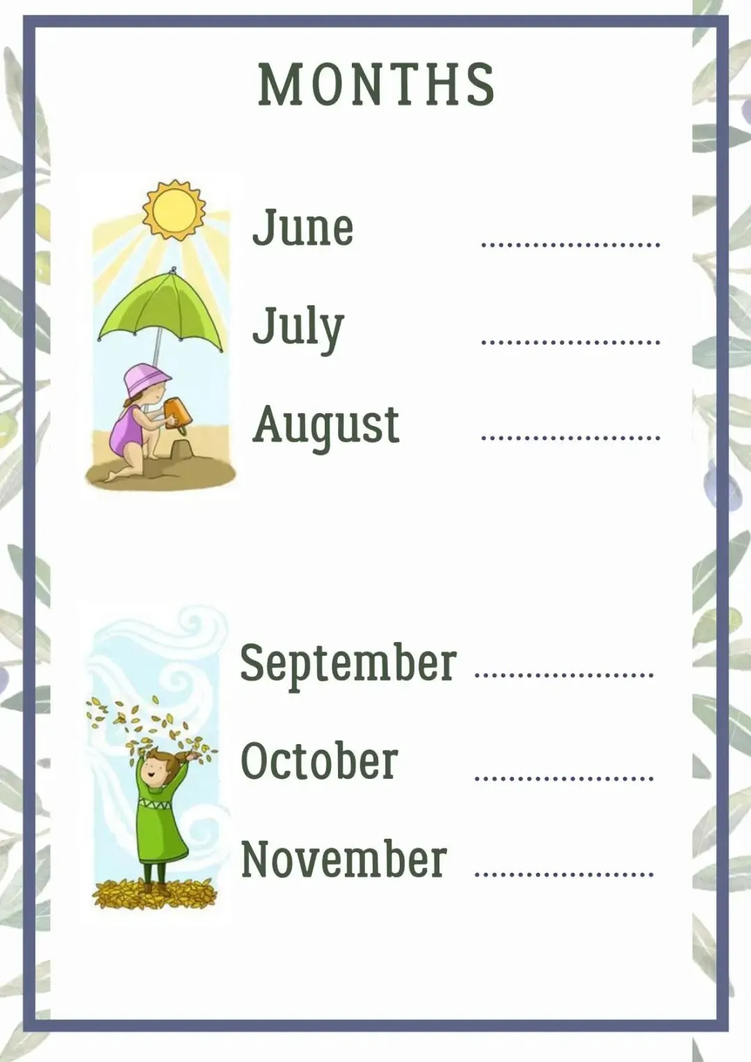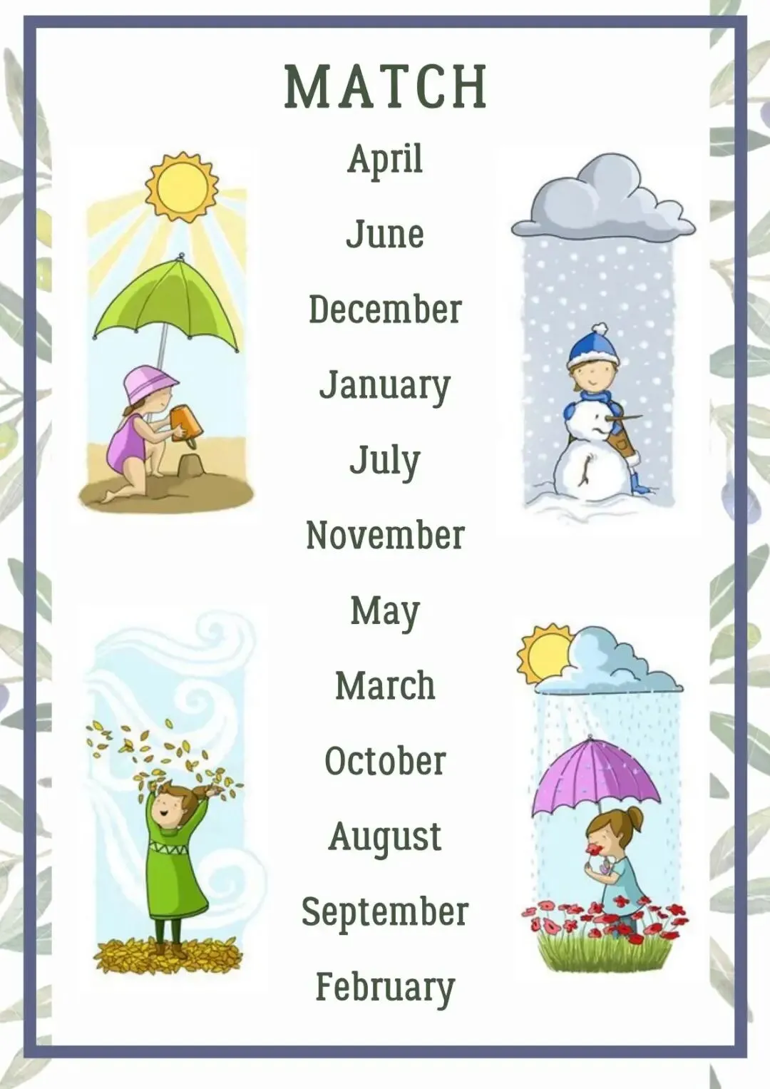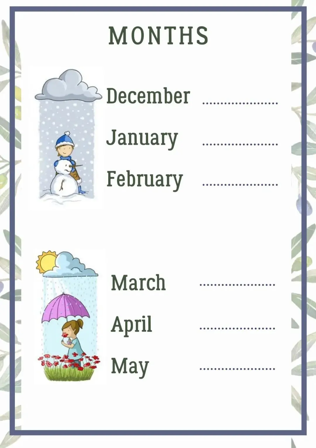 Moths月份季节天气作业纸
