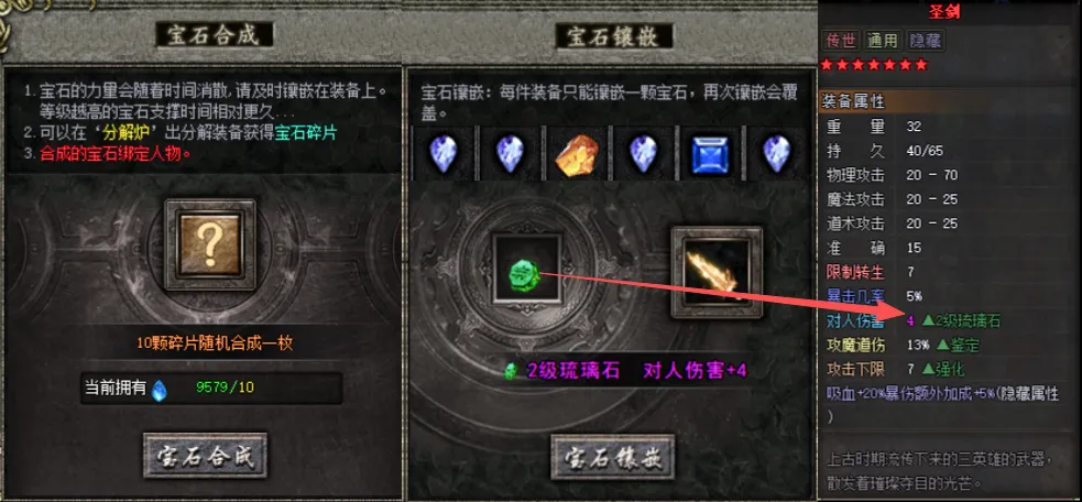 宝石镶嵌在传奇的世界里,已经普遍的不能在普遍,但它也一直是战力的潜质所在,而在复古神剑传奇里,镶嵌宝石却有着不同的玩法,这里的宝石会过期,最多也是20分钟左右的属性加持,并且装备只能镶嵌一颗宝石,只要有足够的宝石碎片就可无限延伸宝石带来的无限战力。