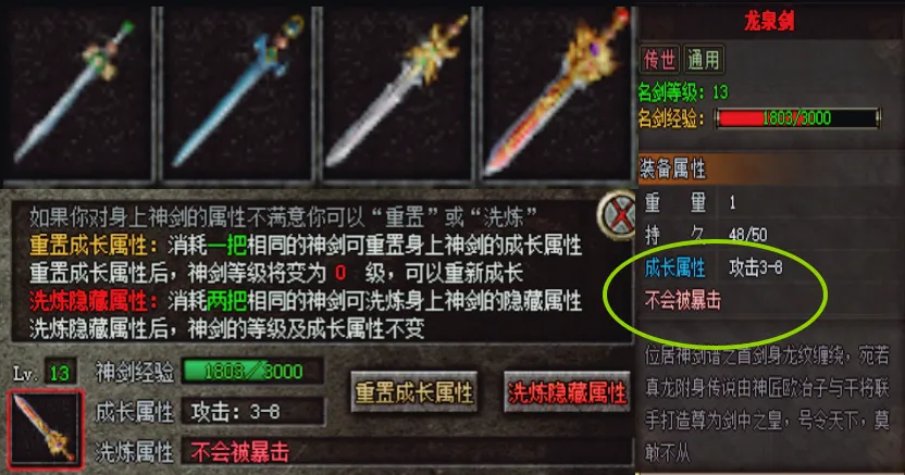 找到npc神剑谱,可制造三职业通用神器(龙泉剑),对打造出的龙泉剑属性不满意,可随时洗练出理想中的属性成分,打出想要的伤害。具体可在神剑谱中查看全部洗练属性。