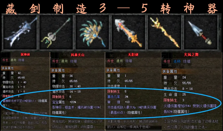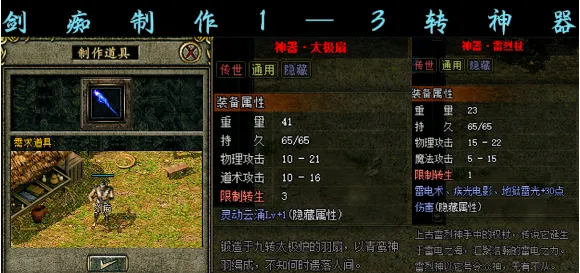 随着人物等级的提升,可以去铸剑山庄打听想要的一切神器。一转到三转可直接找剑痴制作神器,提升战力。此处制作的神器都是通用武器,没有职业限制。