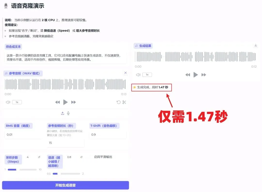 声音克隆党狂喜!这绝对是低配置电脑的福音——1G显存就能跑,几秒钟生成语音文件,完全离线本地运行,不联网也能玩!
