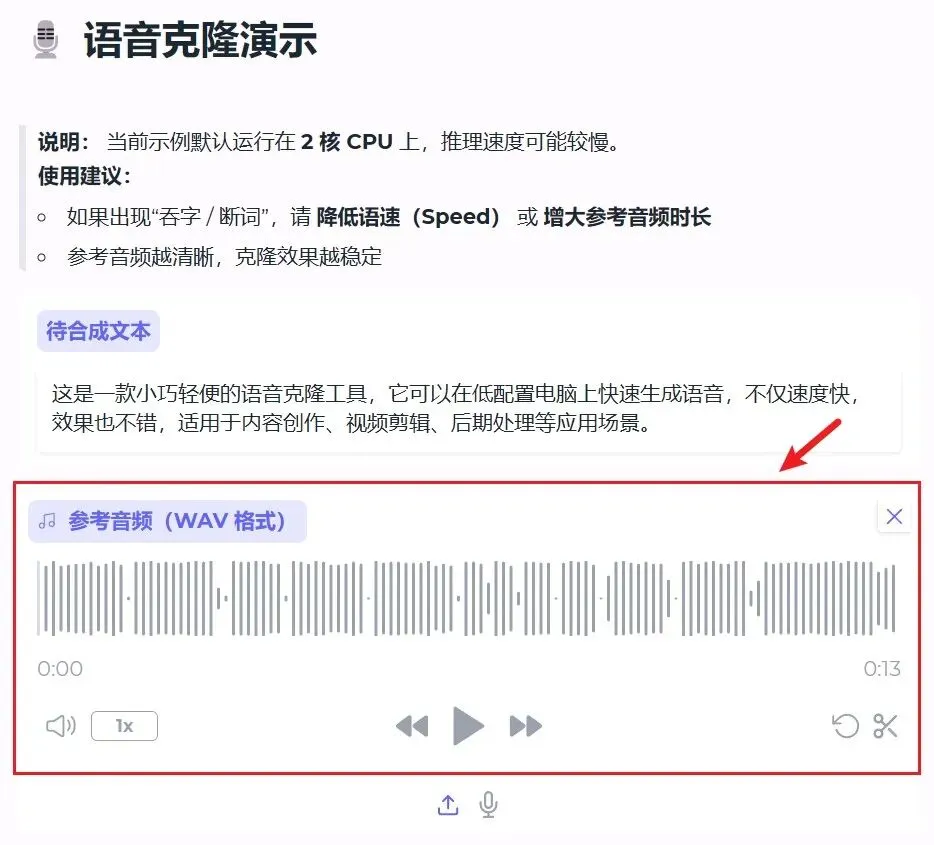 再上传一段几秒钟的参考音频(就是你想让AI模仿的那个声音)——