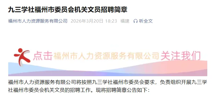 五险一金!文科生来!福州市人力资源服务有限公司招聘