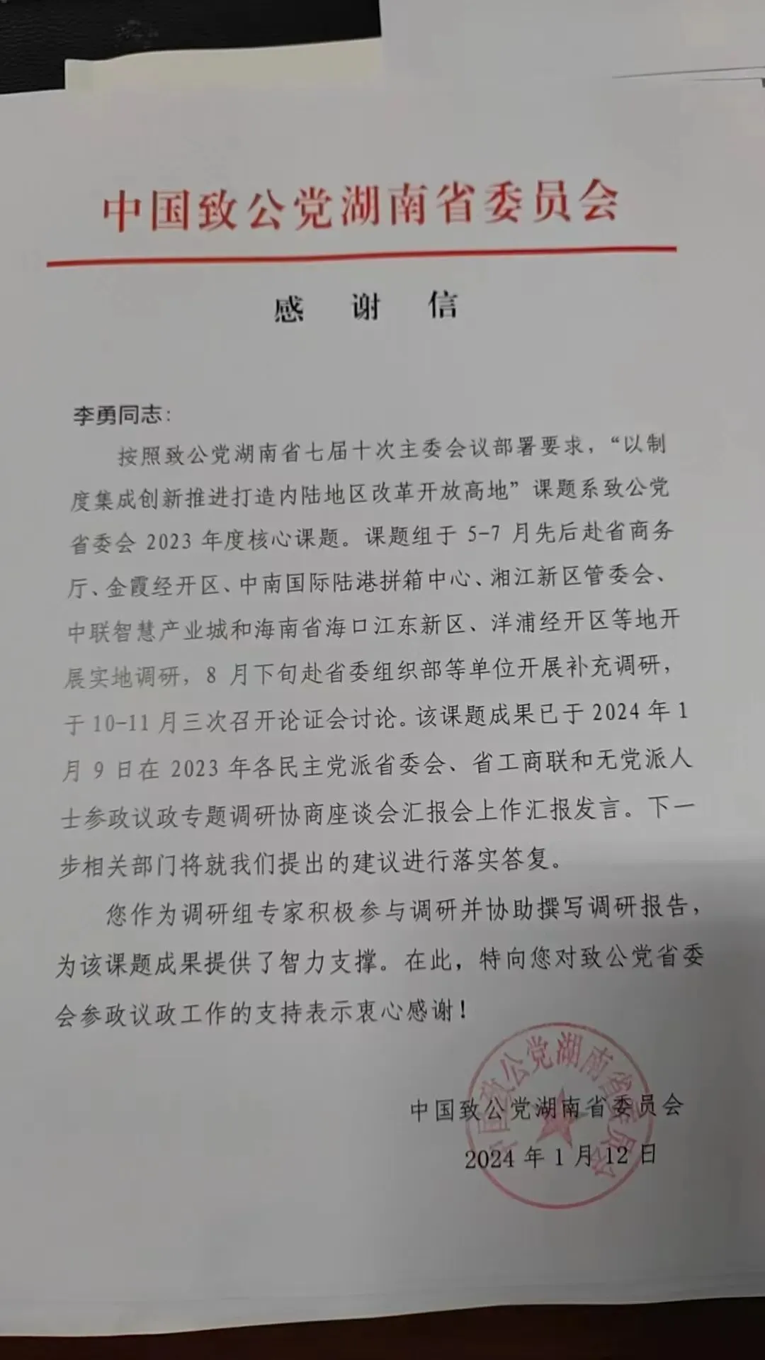 2023年,我作为致公党湖南省委年度重点课题人才人力小组第一执笔人,完成核心课题研究与撰写。