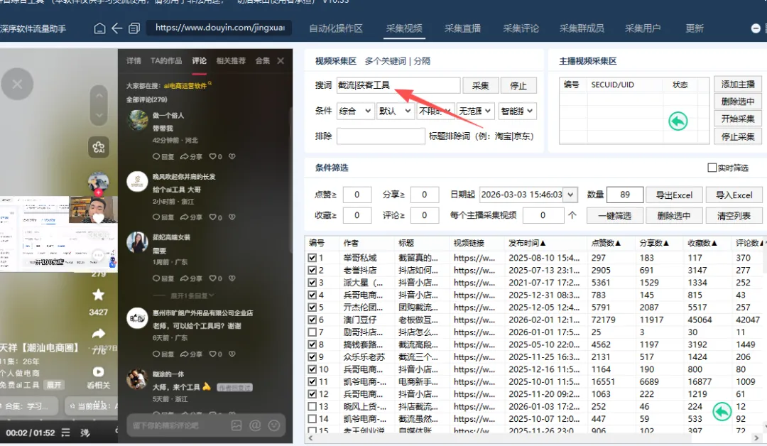 我是怎么用一套工具,把流量“搬”进微信的 很多人做抖音,一直卡在一个问题: 👉有播放,没转化 👉有粉丝,没变现 问题根本不在内容,而在—— 你根本没有“主动拿流量”的能力。 一、抖音的流量,本质不是给你的 你发视频,本质是在“等流量施舍”。 但真正赚钱的人,在做另一件事: 👉主动找到有需求的人 比如: 评论区问价格的人 点赞同行作品的人 直播间停留时间长的人 这些,全部都是—— 已经有意向的精准用户 二、我现在用的一套方法(核心思路) 我做了一套闭环: ① 先找人(精准数据) 通过关键词,直接抓: 评论区用户 同行账号粉丝 直播间用户 👉 本质:筛选“已经感兴趣的人” ② 再触达(放大曝光) 把这些用户: 自动私信 自动互动 批量触达 👉 本质: 让你从“等客户”变成“找客户” ③ 再承接(私域沉淀) 通过话术 + 卡片: 👉 把用户引到微信 完成最关键一步: 把平台流量 → 变成你自己的资产 三、为什么很多人做不起来? 因为只做了一半: 会发视频 ❌ 不会截流 ❌ 不会转私域 ❌ 真正的核心是: 👉流量不是等来的,是“搬”来的 已关注 关注 重播 分享 赞 视频详情 四、关键在这两个点 1. 钩子(决定转化) 比如: “我发现一个漏洞…” “这个功能99%的人不知道…” “同行都在偷偷用…” 👉 本质:制造好奇 + 利益点 2. 量(决定结果) 哪怕转化率只有3% 但你每天触达10000人: 👉 就是300个精准流量 五、一句话总结 👉 抖音赚钱的核心不是内容 👉 是:精准用户 + 批量触达 + 私域转化 想低成本 、 高效率搞定精准获客 ? 扫码关注公众号 , 9.9 元即可领取体验卡 , 一键开启全网精准获客 , 让流量变现更简单 !