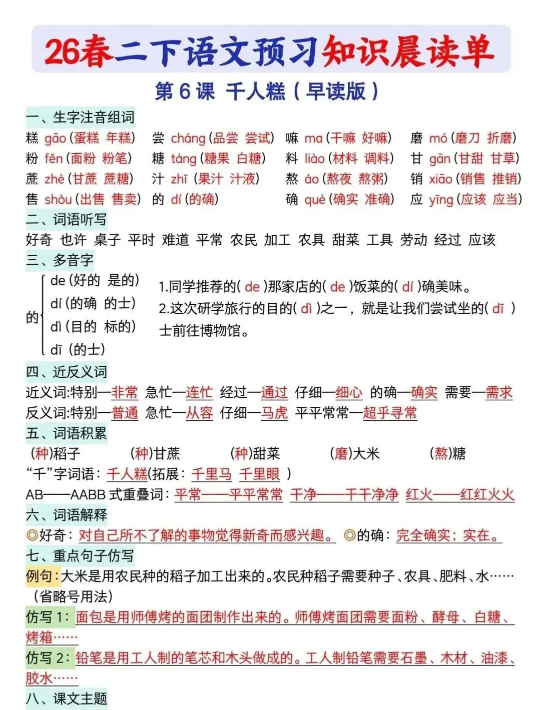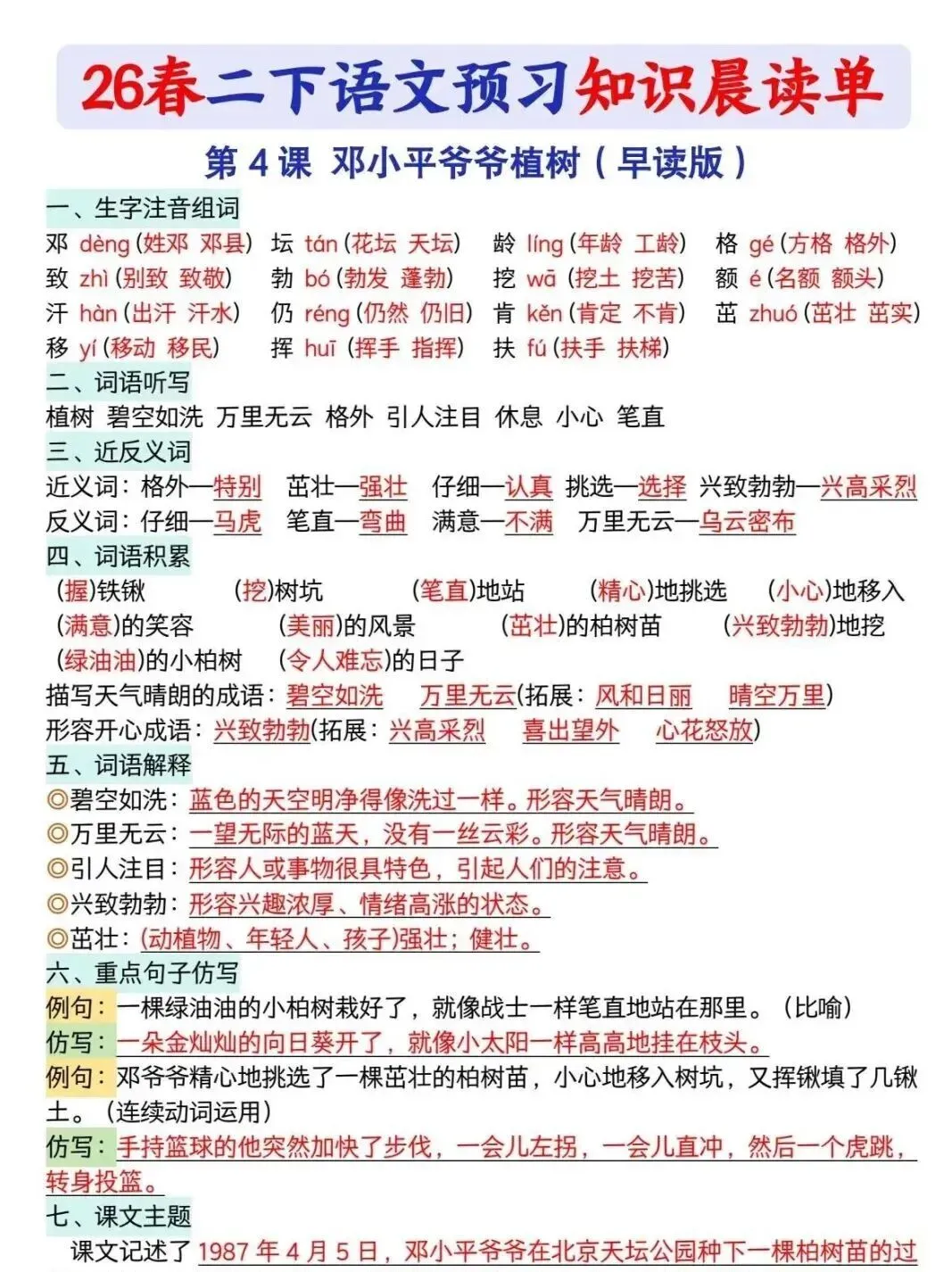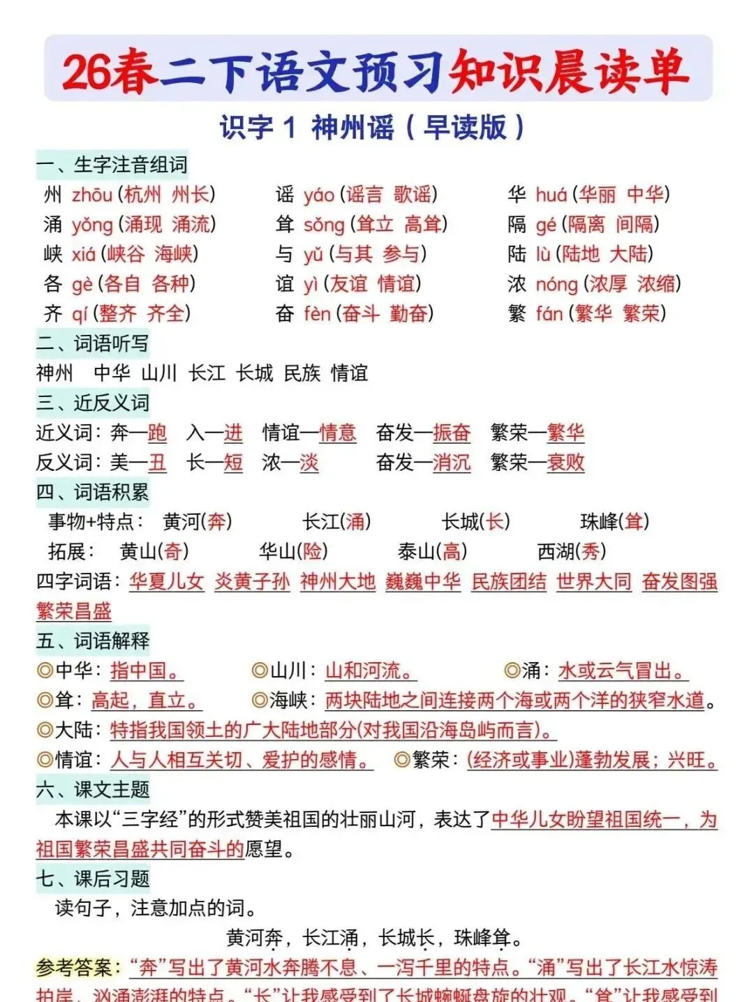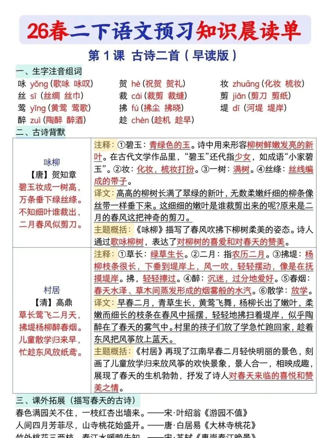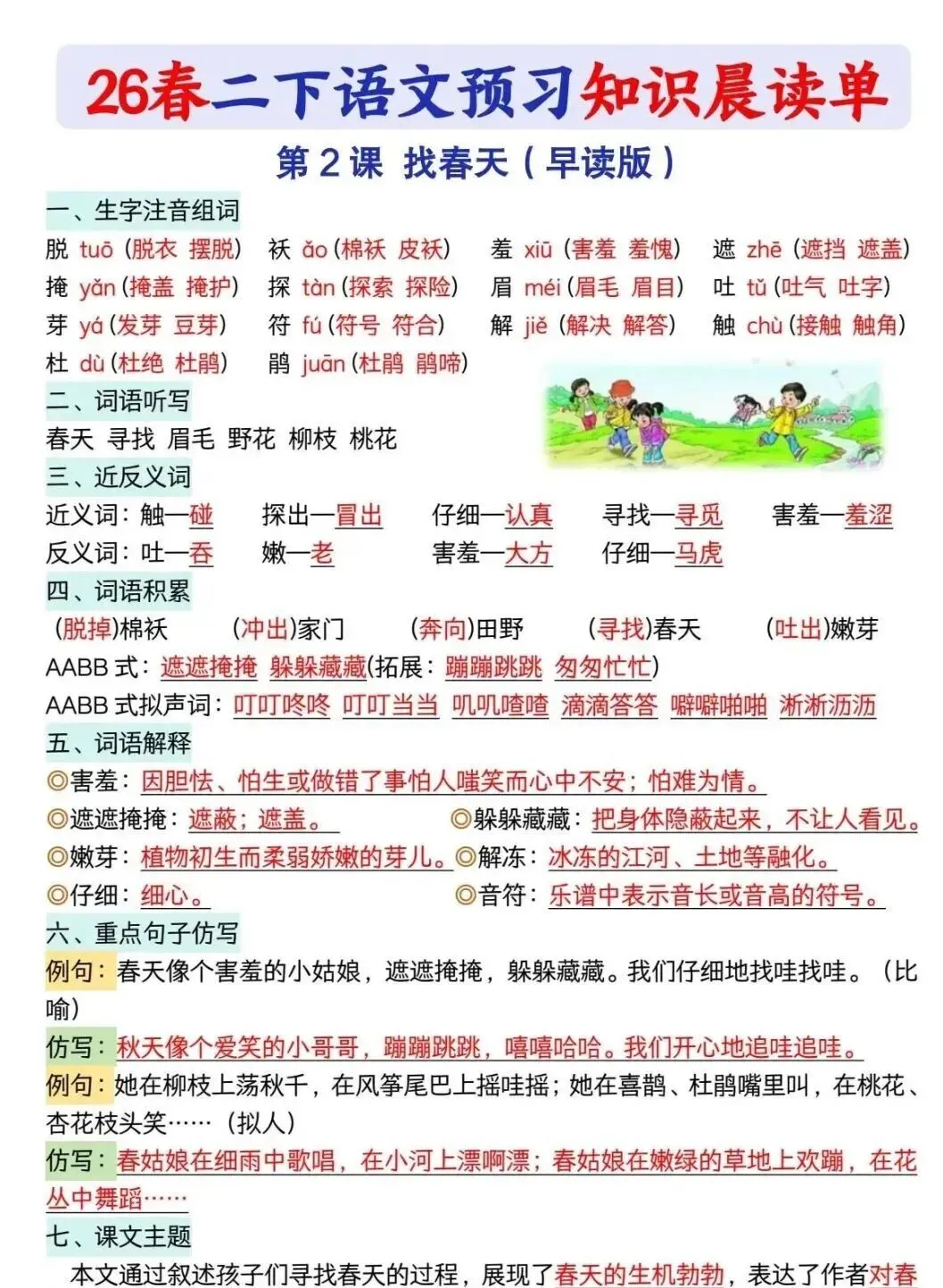 26春小学语文二年级下册预习知识晨读单|可下载打印 点击上方“语数英培优学堂”↑↑↑关注我 版面有限,不过多展示 需要直接拉至文末下载 完整电子打印版免费领取方式 ▲点击上方 语数英培优学堂 在公众号消息框发送: 11346,即可免费领取