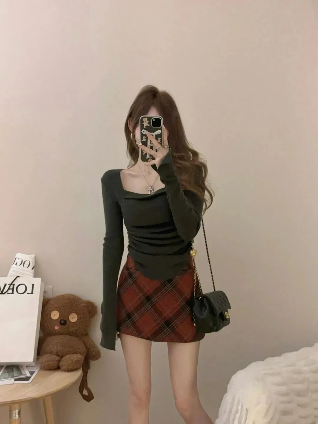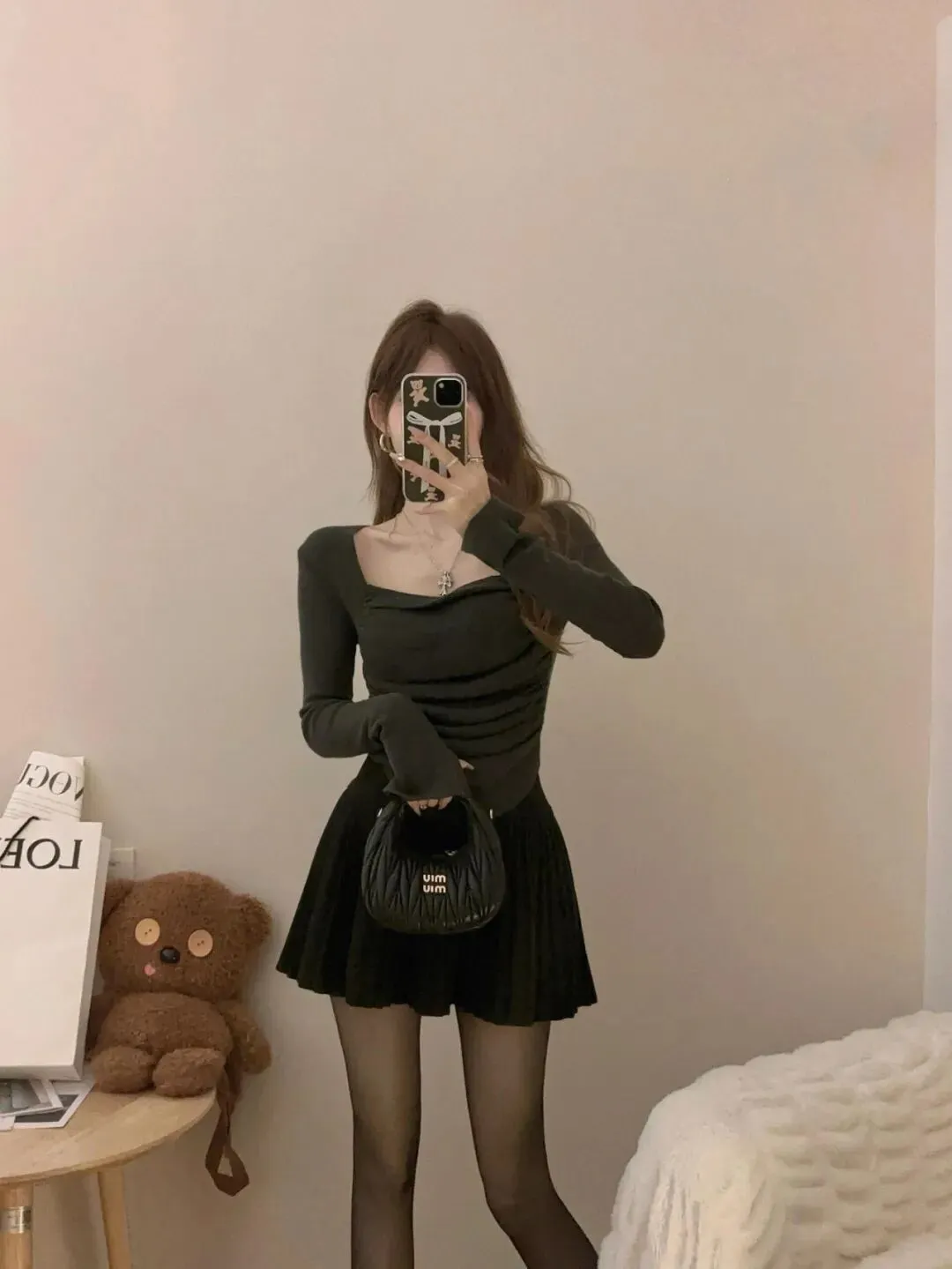 在镜前的每一次穿搭,都是与自己的对话。不用迎合别人的审美,不用追赶流行的趋势,只需要跟着心走,用一件上衣,一条半裙,一个链条包,就足以撑起一整个日常的精致。不用刻意摆拍,不用修饰表情,只需要对着镜子,用穿搭表达态度,把日常的瞬间都拍成故事感满满的大片
