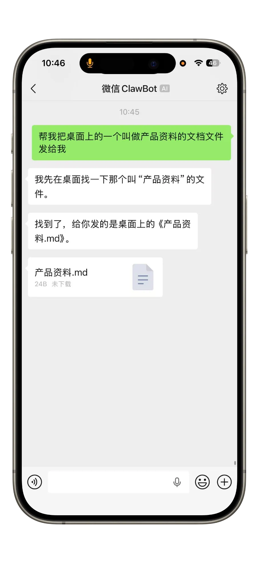 人在外面,文件在电脑上,微信发送:「帮我把桌面上的产品资料文档发给我」