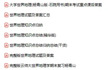 今天分享的资料是「0371-世界地理学」电子版+学习笔记+知识点总结+期末考试重点+复习资料+习题集及答案+名词解释+历年真题试卷及答案+题库及答案+复习重点+思考题及参考答案+公式总结+考试重点基础题+知识总结+高清PDF可打印+免费分享!