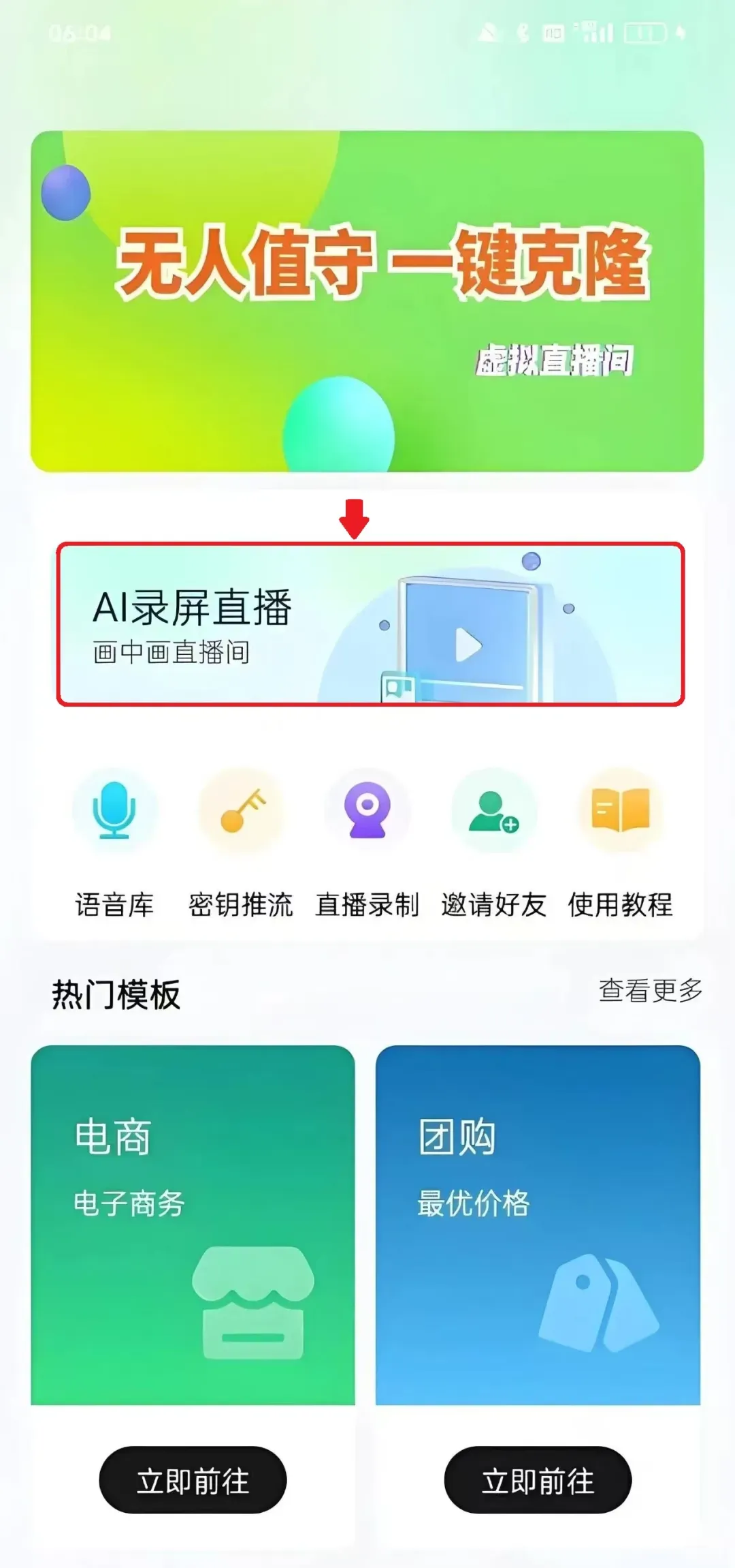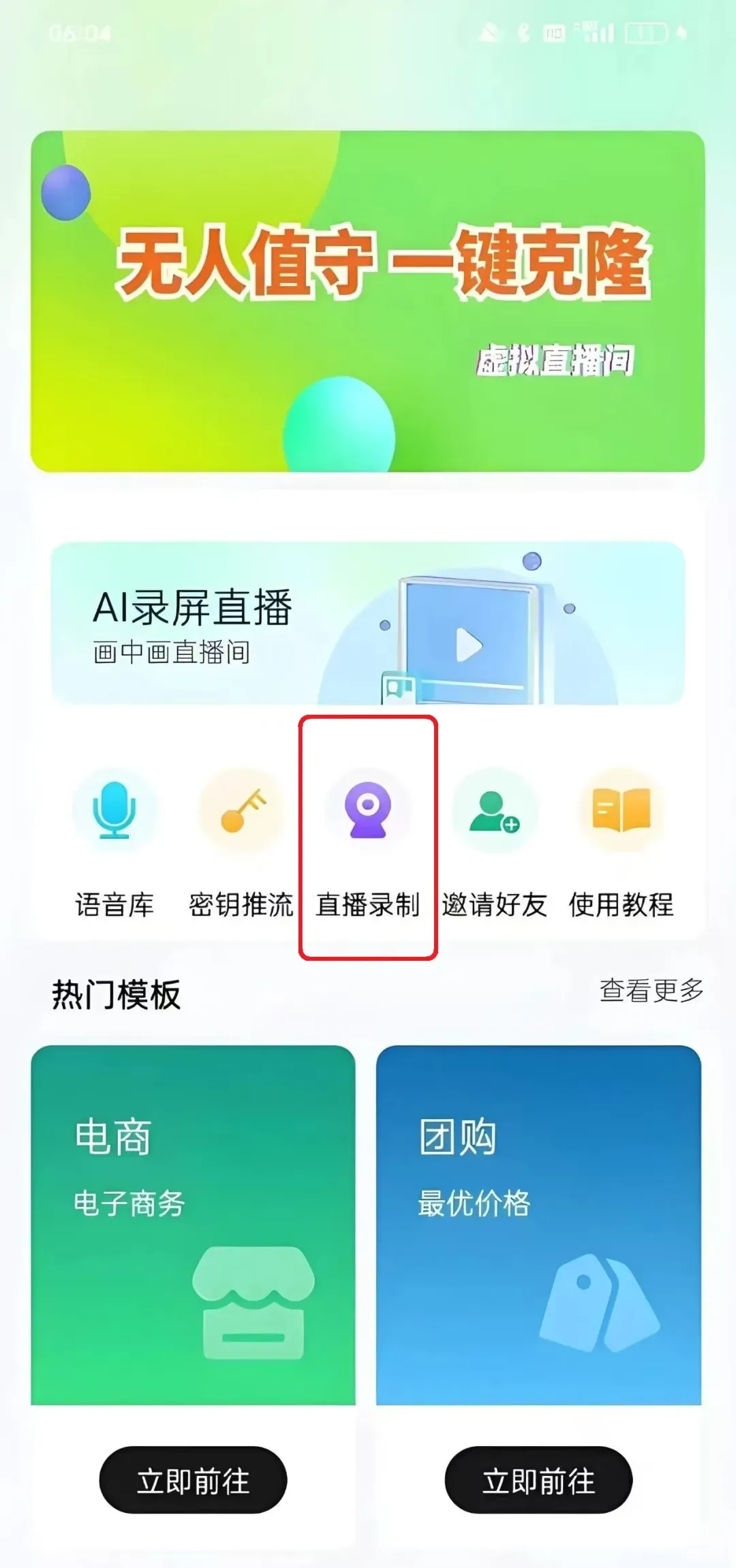 第一步:点击录屏直播