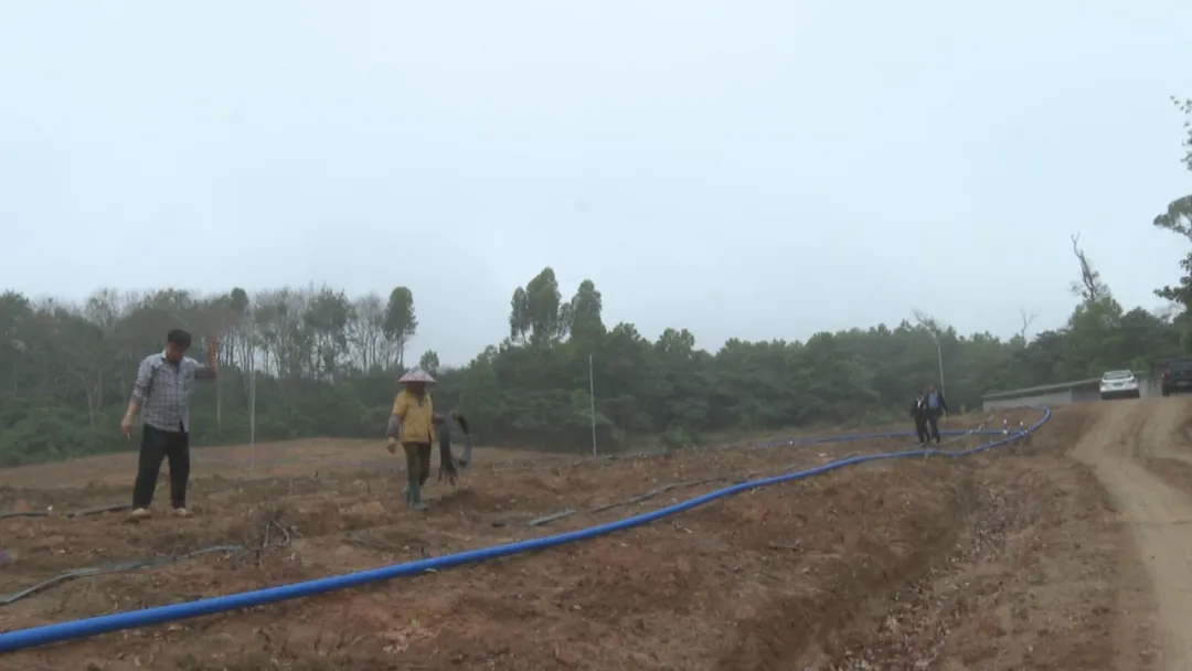 眼前这片38亩的坡地正是仁教村咖啡种植示范基地。一排排咖啡苗在坡地上整齐排列着,嫩绿的新苗,长势良好,几名工人正在熟练地安装着滴灌管道,工作有序开展着。