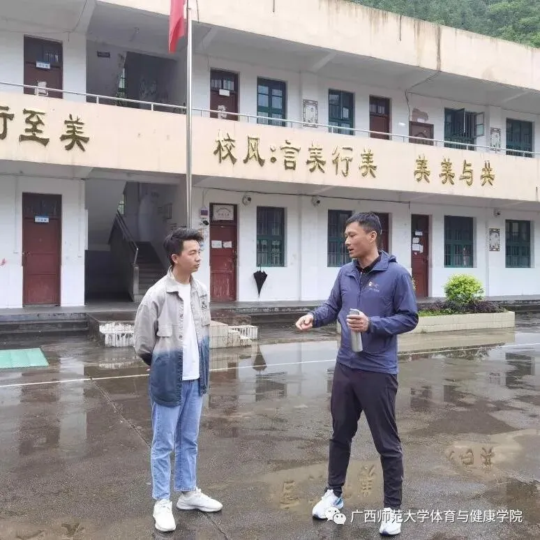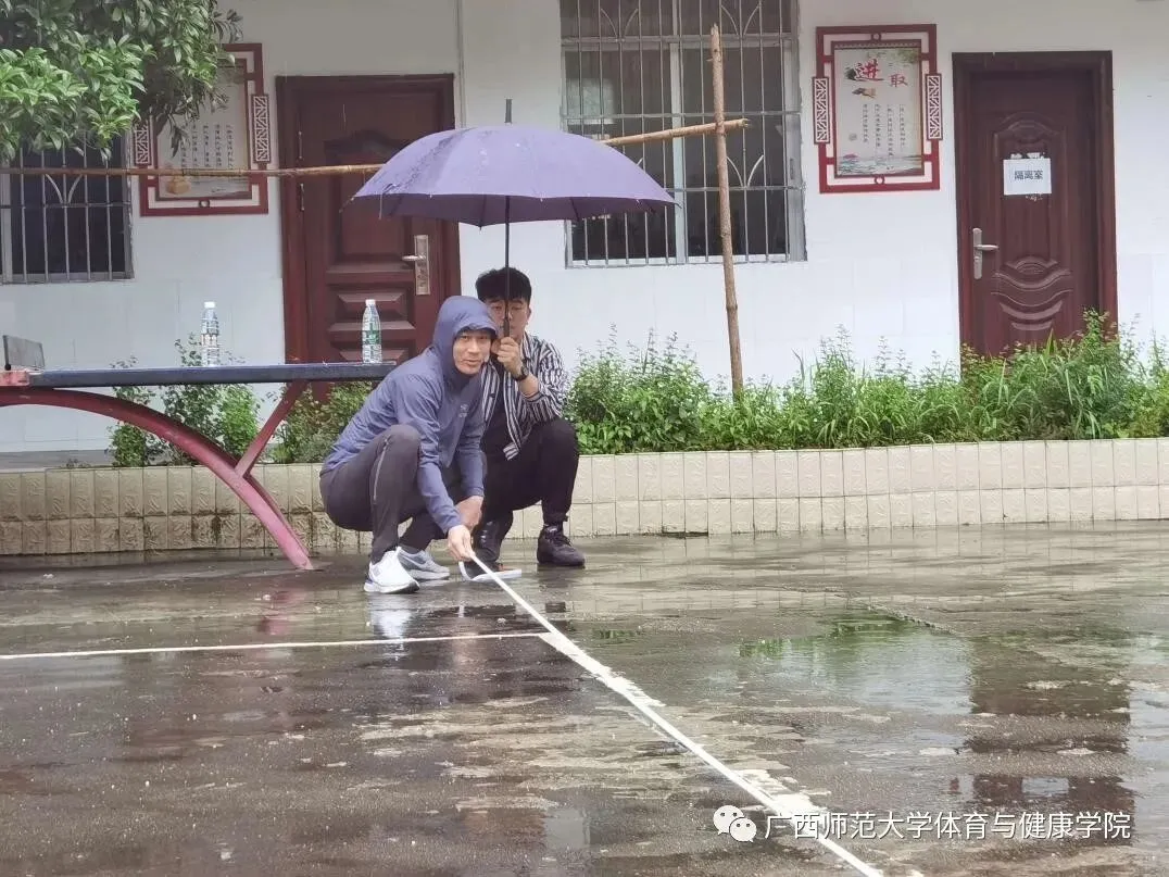 在学校派驻资源县坪水底村工作队员邢振亚的陪同下,学院党委副书记苏政、组织员王霖及辅导员李鹏程、潘怡赴坪水底完小开展体育运动场地测量、定点、设计规划活动,为之后场地画线工作做足准备。场地规划包含气排球场、羽毛球场、篮球场、折返跑道、立定跳远等场地的画线设计。体育与健康学院党委将继续聚焦力量关注完小,巩固拓展体育扶贫成果同乡村振兴有效衔接,推动全民健身,为乡村教育振兴的发展贡献体健学院智慧。