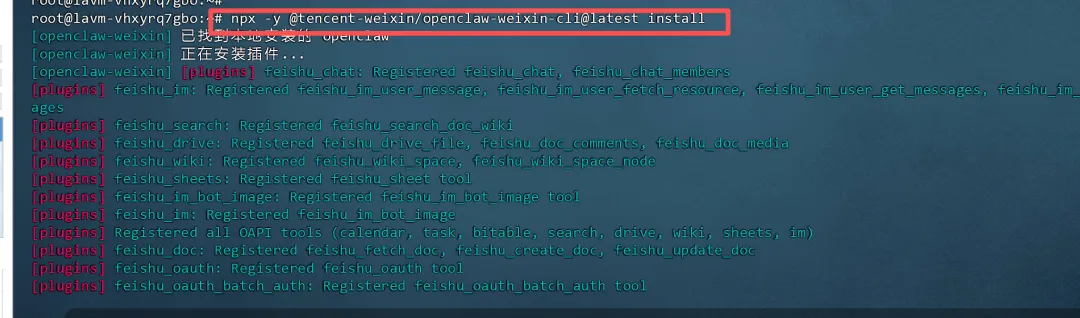 npx -y @tencent-weixin/openclaw-weixin-cli@latest install