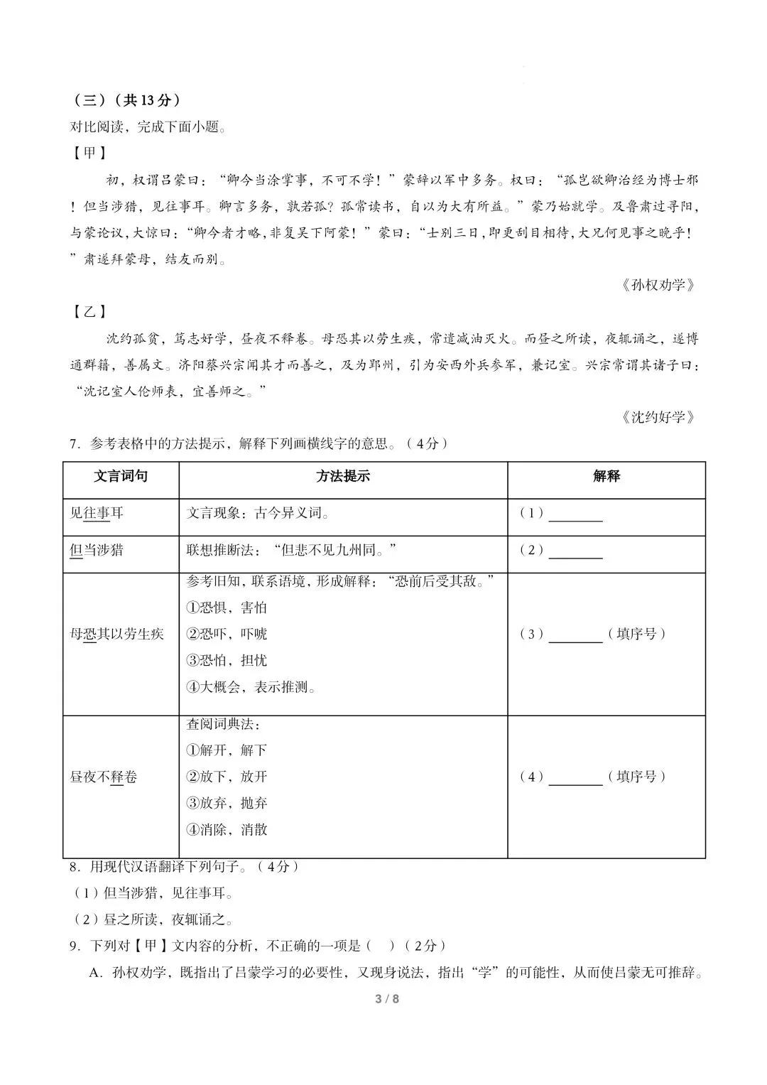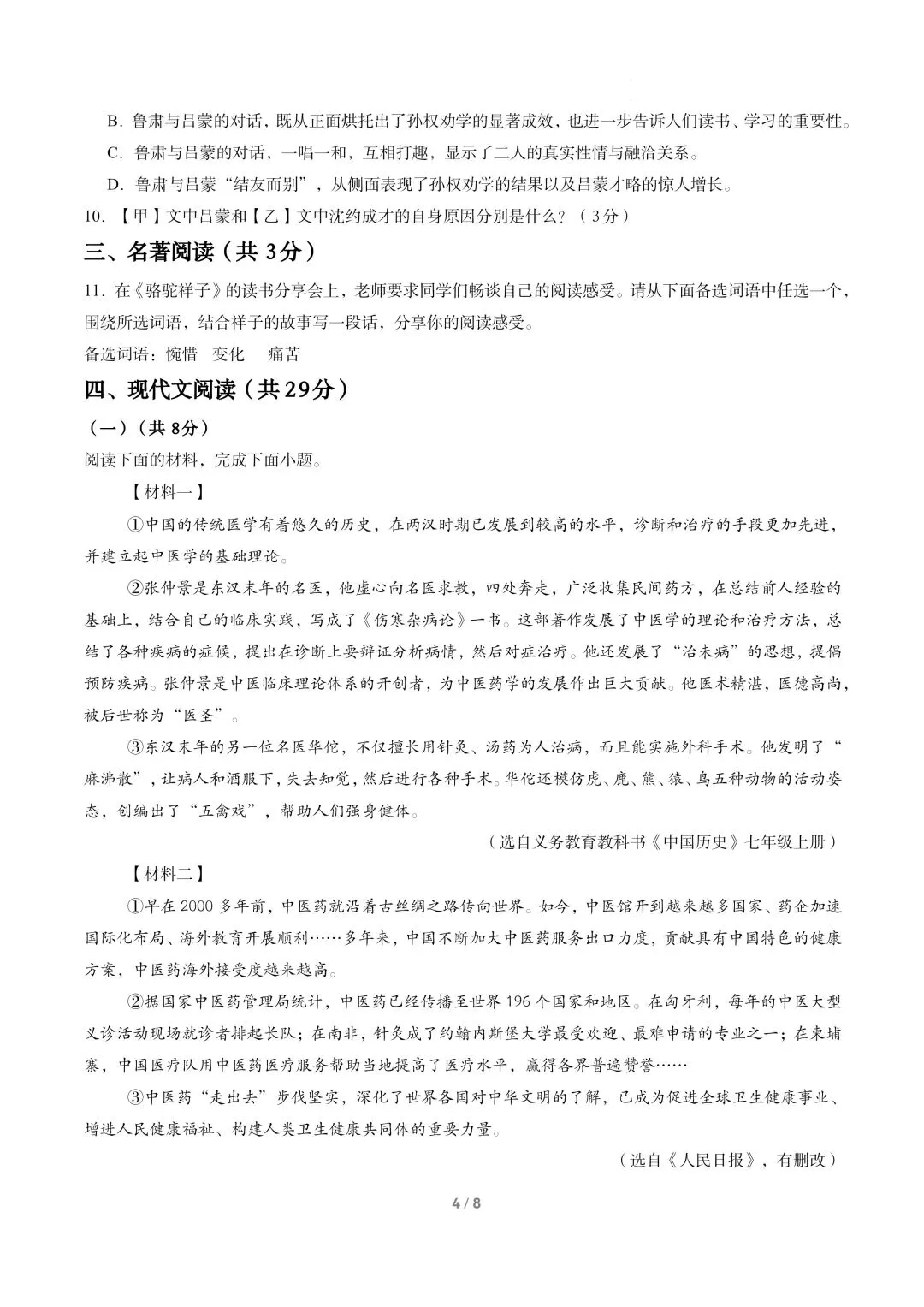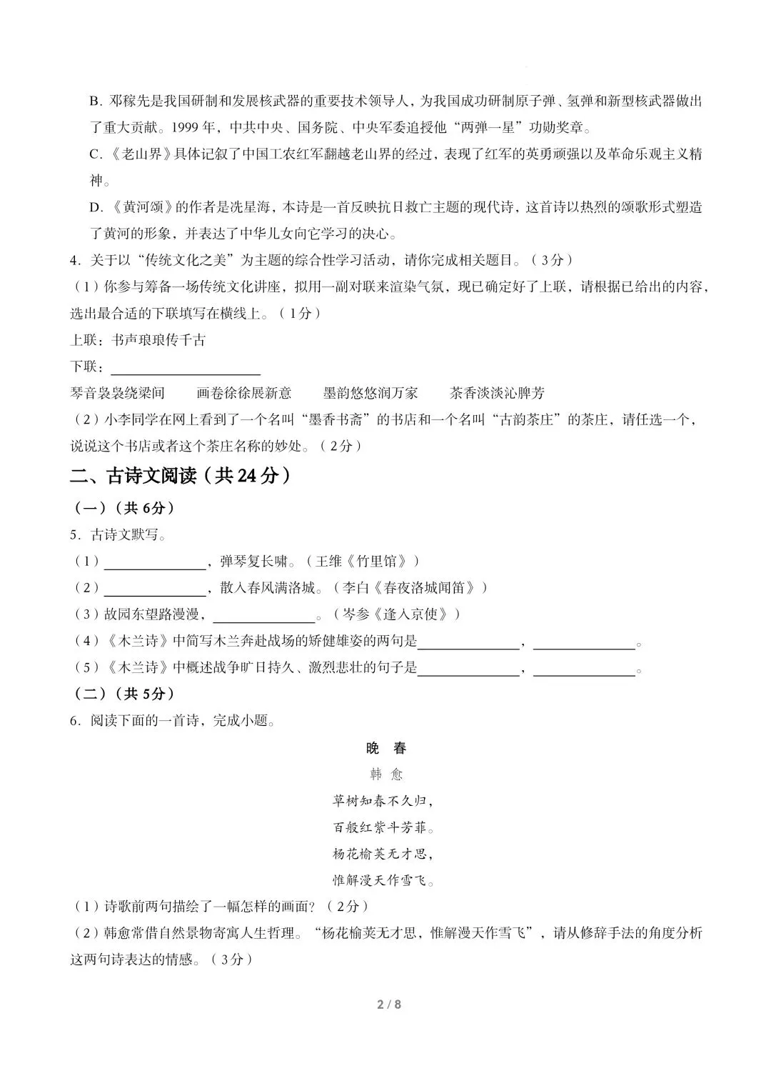 2026春新人教部编版七年级下册语文第一次月考测试卷(基础过关卷·含答题卡)电子版可打印。
