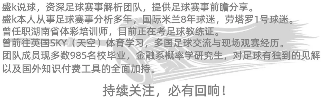 本文所提供中国竞彩赛事分析文章,纯属兴趣而创作,数据及资讯皆来自中国竞彩官方网站,仅可作为参考之用,并不构成要约,招揽,诱使等任何种类或形式之申诉或任何决定性建议,请务必独立思考。