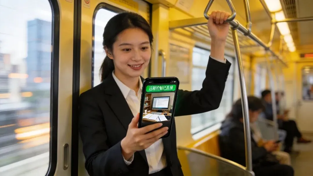配图说明:通勤路上用手机遥控电脑,打造移动办公室