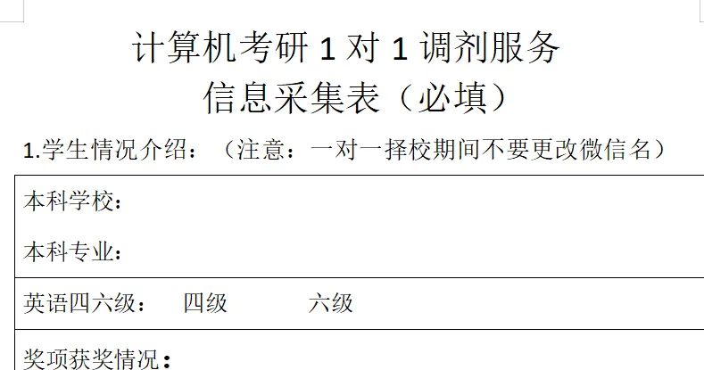 1.一对一调剂信息采集表,一对一语音通话,充分了解考生基本情况,针对性定制方案!