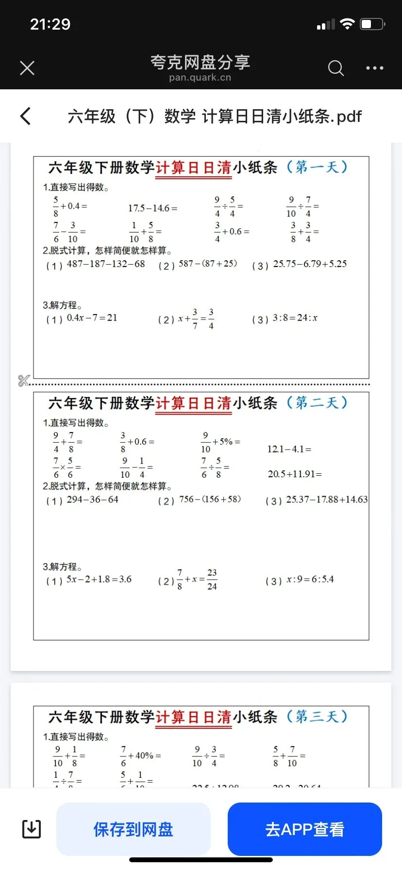 「六年级(下)数学 计算日日清小纸条.pdf」,链接:https://pan.quark.cn/s/bef3dc2cedf1