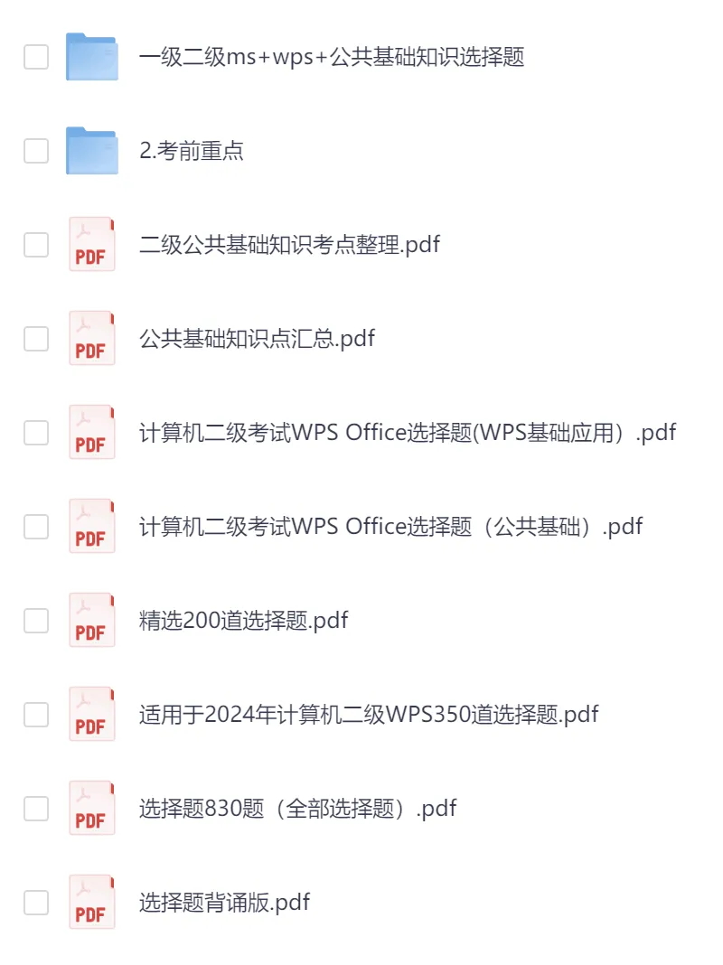 今日分享:计算机二级考试考前押题一级二级ms+wps+公共基础知识选择题