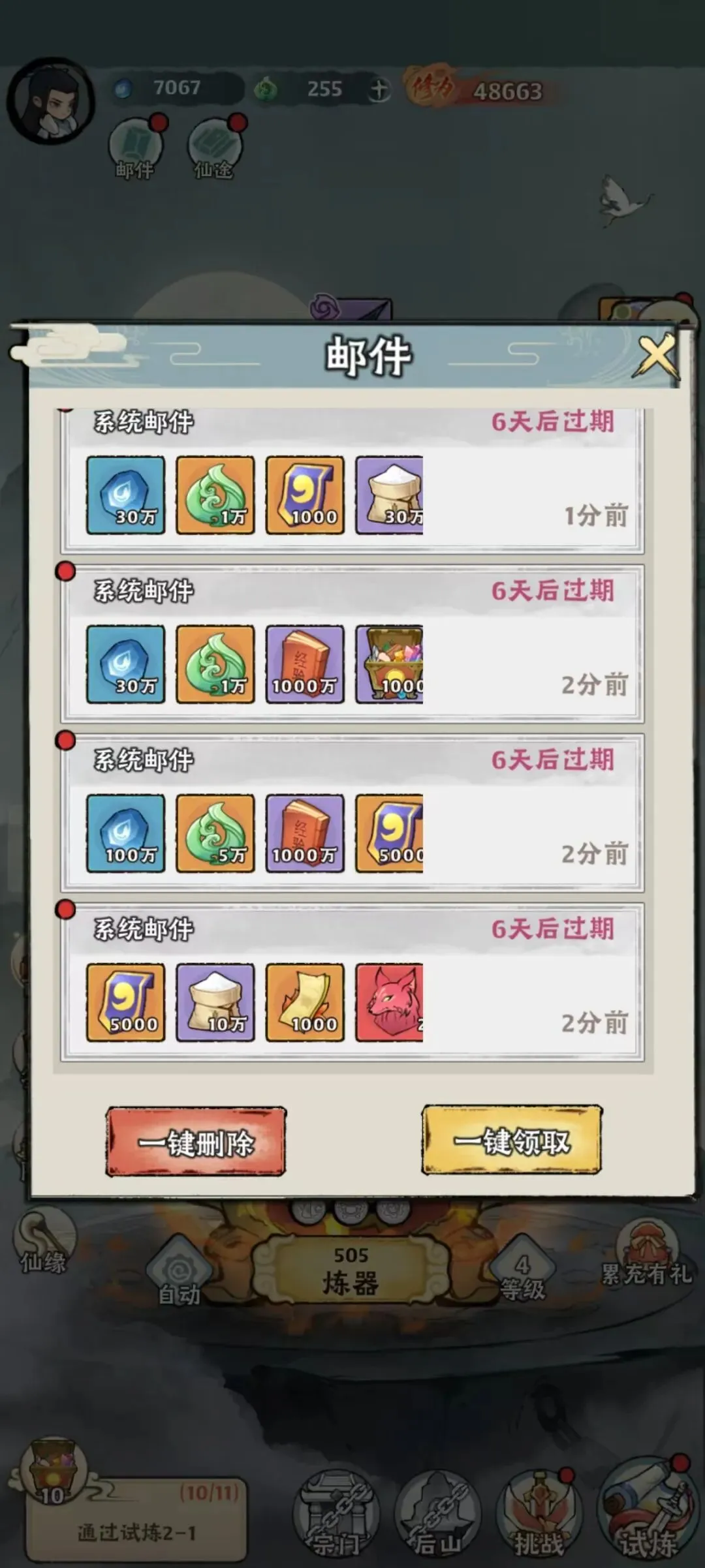 二、✨新手开荒:1-50 级零氪速通(稳冲榜)1. 开局必做(前 3 天)狂推主线,优先解锁炼器鼎(核心)必拿云翅鸟(零氪前期最强灵兽,刷双强攻 + 威力)日常任务、除魔、无尽塔每日清空除魔双倍:12:00-14:00、20:00-22:00护送组队 + 20% 收益,必组队2. 快速升级诀窍炼器鼎先升 7 级(开箱经验 / 装备品质大幅提升)经验副本、体力买满(等级 = 战力基础)新服早进,第一天冲庆典异兽挑战