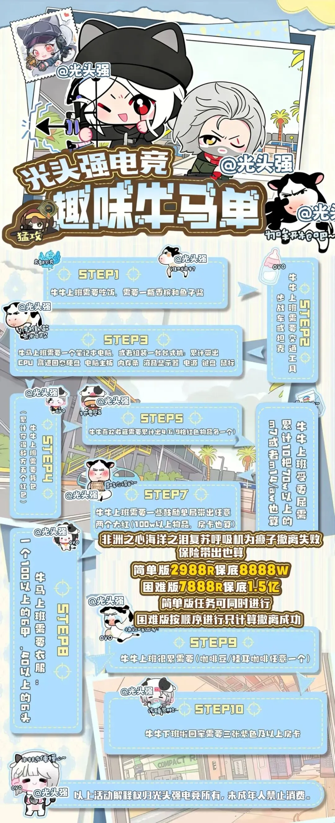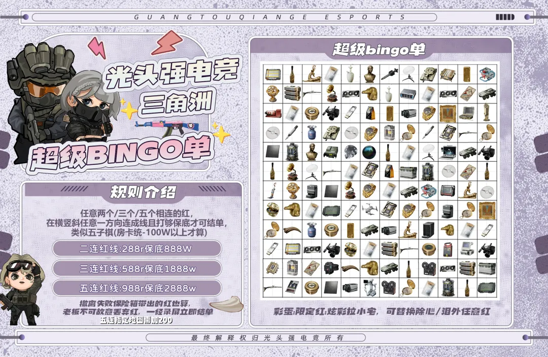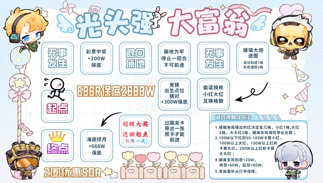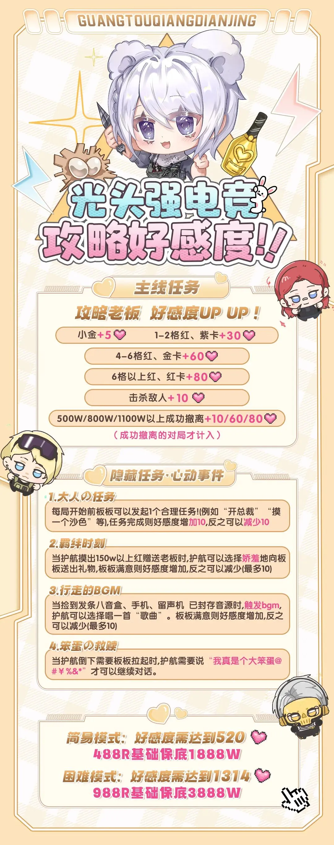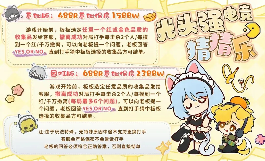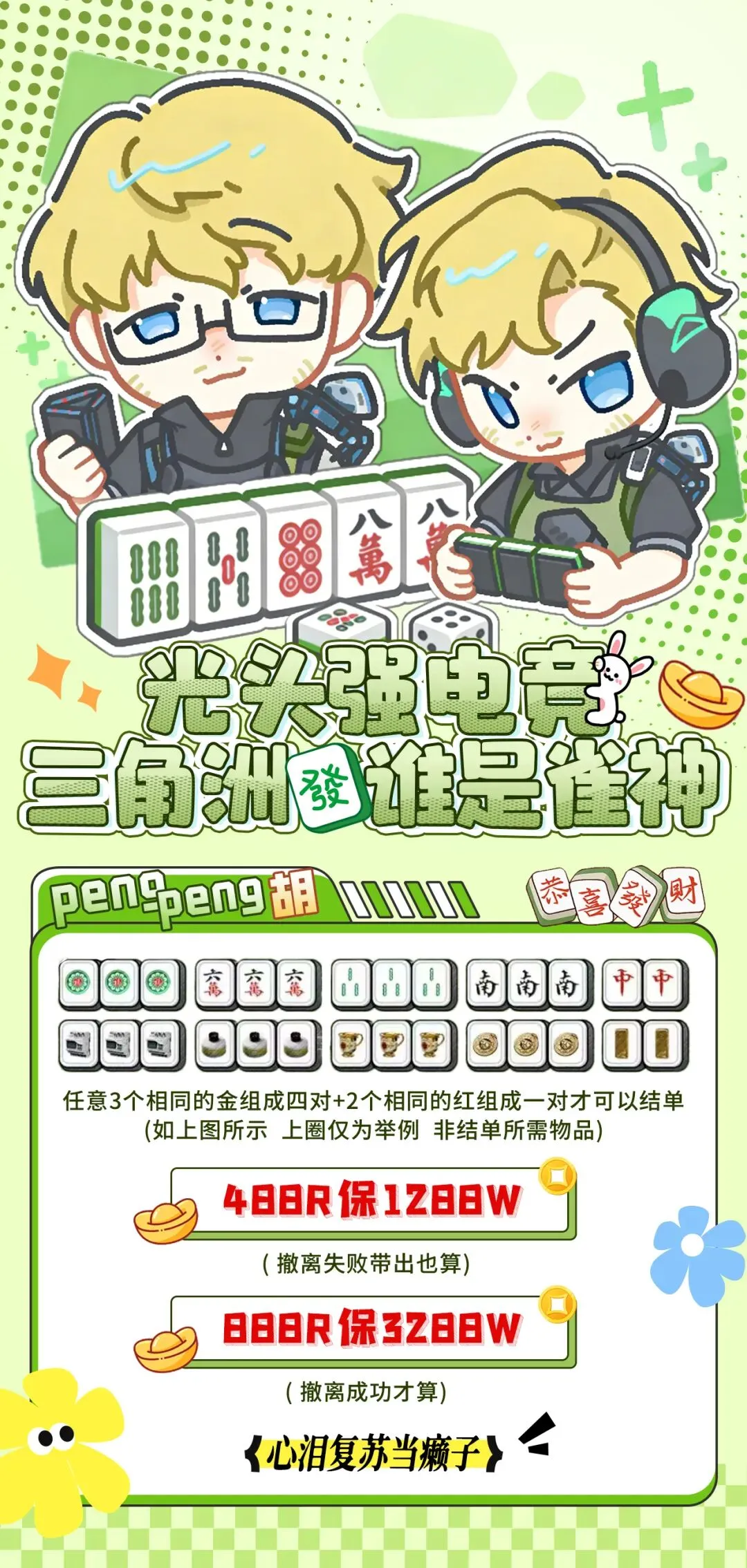 光头强电竞价格表合集速览! 正价护航单 超值保底单:(正价单比别家体验单都便宜) 注:红头修理完耐久>38 红甲修理完耐久>100 红包计入价值 (所有单子统一标准 不分价格) 超绝趣味单 388档次趣味单(所有趣味单炸单正常加保底)推荐:特色枪单 488档趣味单:推荐:Galagame好感度 588档趣味单:推荐:无限续杯(运气好一直吃) 688档趣味单:推荐:大富翁 788档趣味单:推荐:总裁大人(保底撤离五次) 988档趣味单:超绝摸红单 千元档:推荐:超难任务BINGO 究极富哥儿单:打手牛马的一生