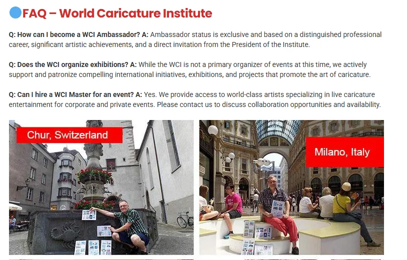 世界讽刺漫画研究院(WCI)通过我们经过认证的代表——真正的漫画大师,为致力于漫画艺术的个人和组织提供支持。