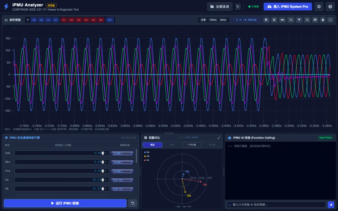 后来在做 iPMU 配网分析平台(网页版)的过程中,我决定干脆自己造一个——不是网页端的在线系统,而是一个装在电脑上、开箱即用的桌面端波形分析软件。