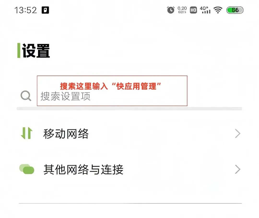 要是在“应用”里没找到,就直接在设置页面上方的搜索框搜“快应用管理”,点进去就能看到那些隐藏的APP了。