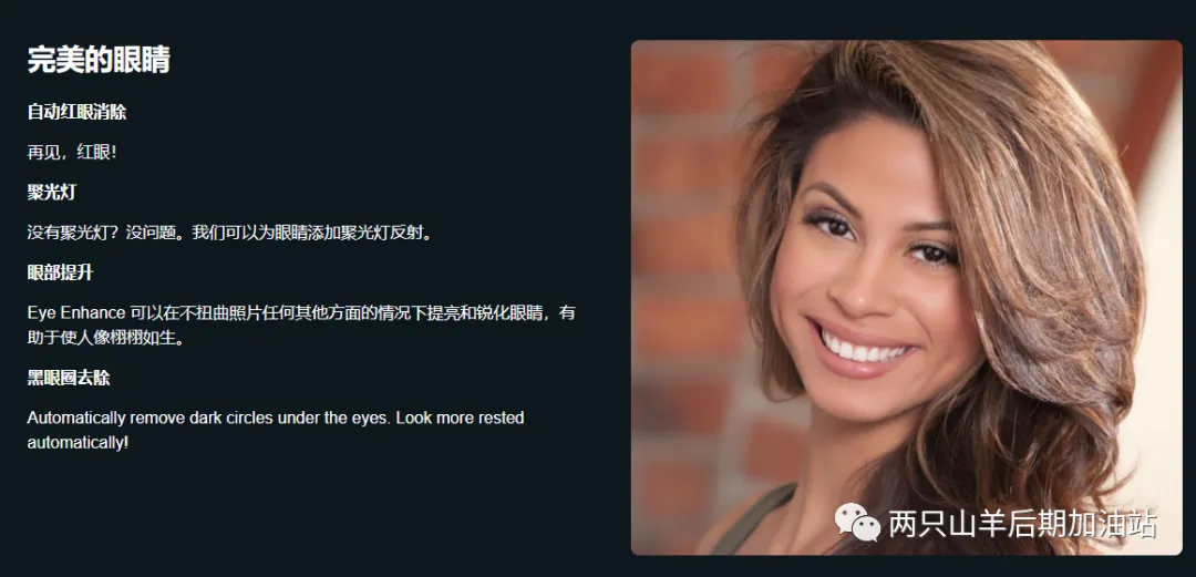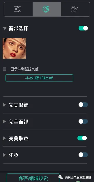 一键廋脸、磨皮、添加眼神光、去黑眼圈