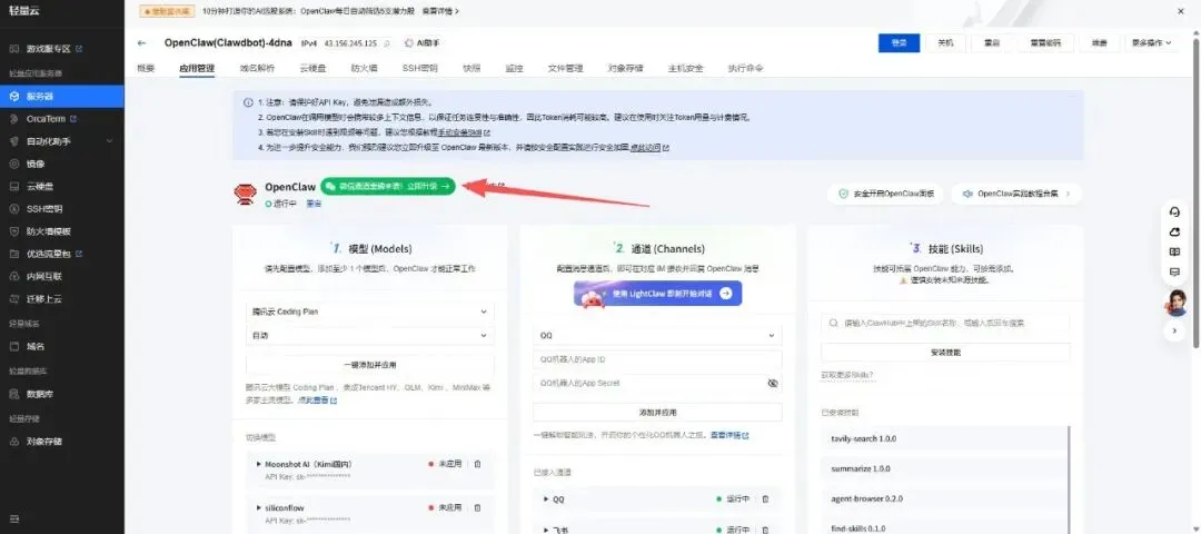 如果你用的是腾讯云的 OpenClaw 镜像,这一部分可以说是“最舒服的体验”。