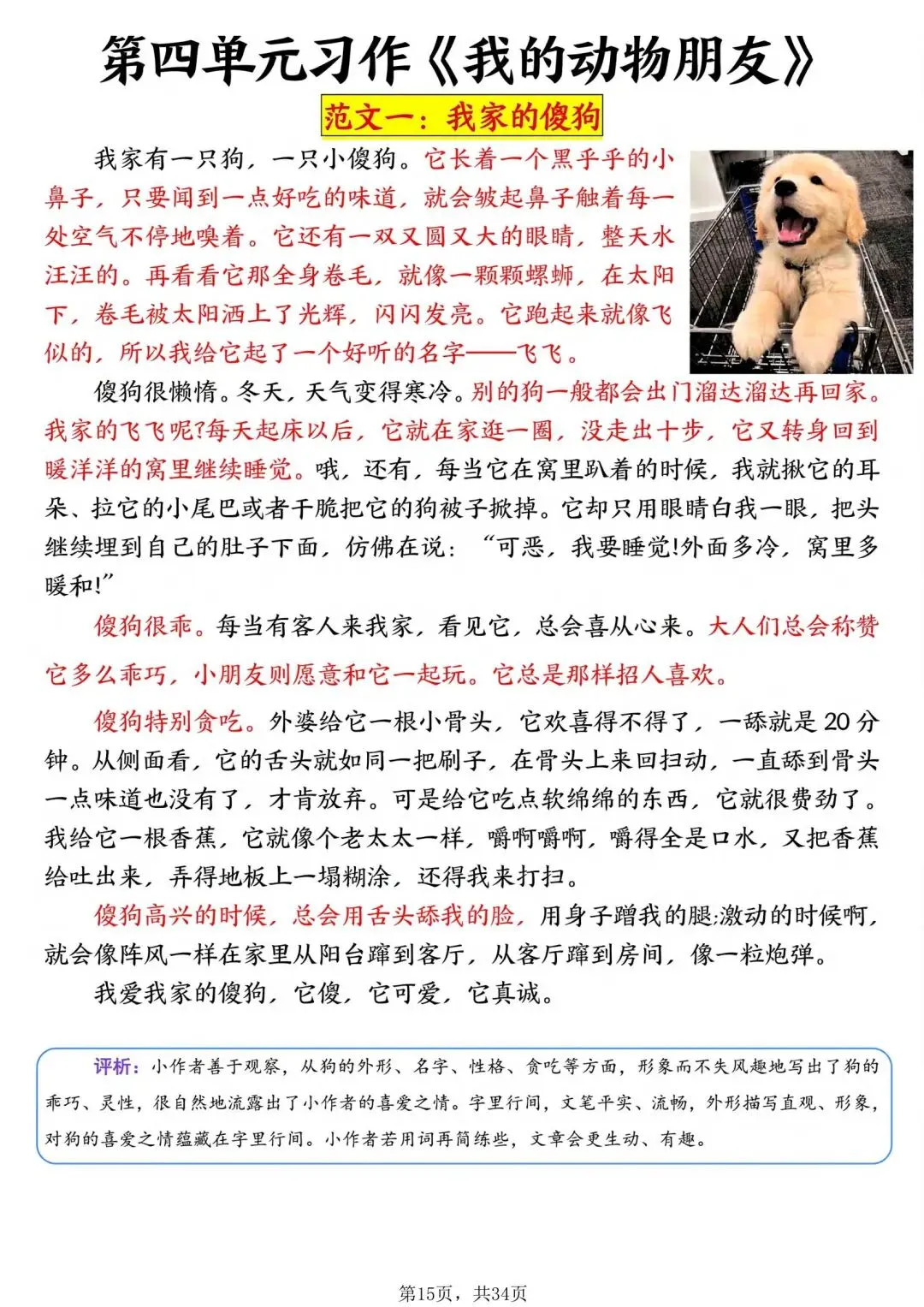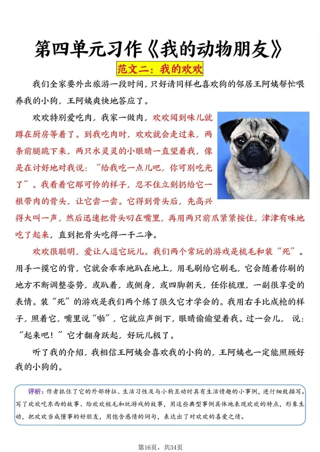 2026年春人教部编版四年级下册语文《1-8单元习作范文》,共34页,可下载打印