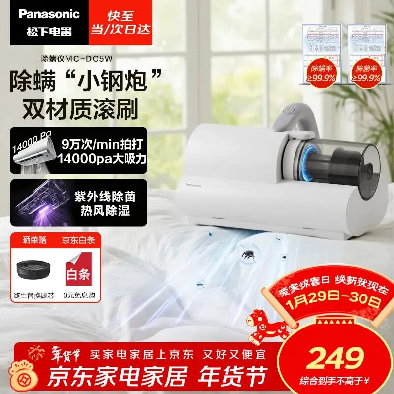 松下Panasonic【清洁神器】除螨仪床宝吸猫毛除螨虫一体机床上吸尘器大吸力紫外线杀菌热烘除湿团购礼品MCDC5W…