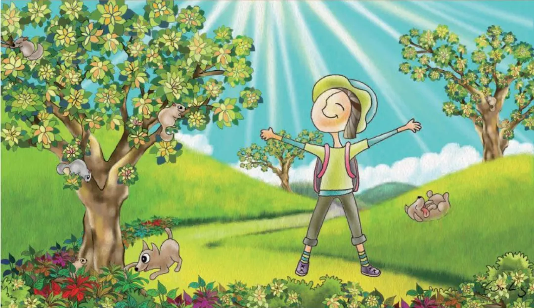 1. 她深吸一口气,迎向晨光,从绿意葱笼的后山下来,满满的元气。