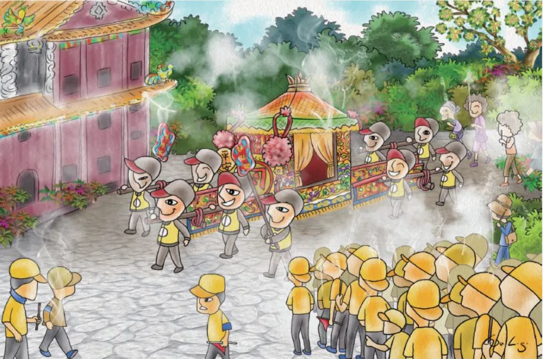 5. 一座座神轿缓缓从香烟云中移驾而来,善男信女们一时沉浸在神圣的信仰中。