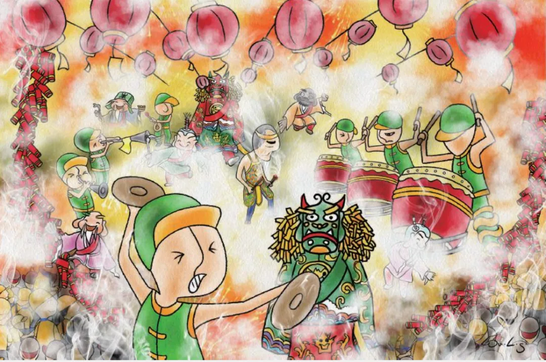 8. 又过了一个小时……锣鼓手打得更快,鞭炮一串一串地点燃,雨点似的声声催促。