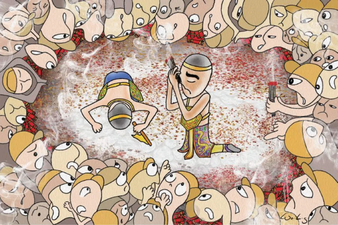 9. 乩童偏偏毫无动静,更加聚精会神,专心祈祷着。这让信徒很疑惑,纷纷交头接耳,杂乱地说起话来。