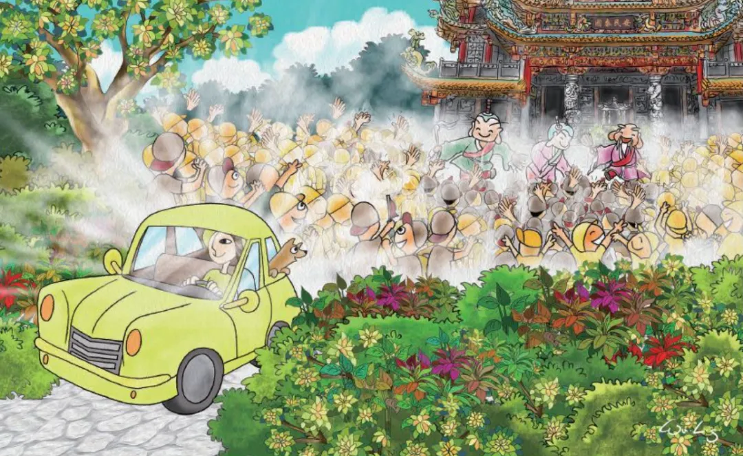 10. 终于,在工作人员的指挥下,她把车开出来了——想不到后头登时一阵欢呼,乩童已经领了圣旨,登上高高的大殿去了。