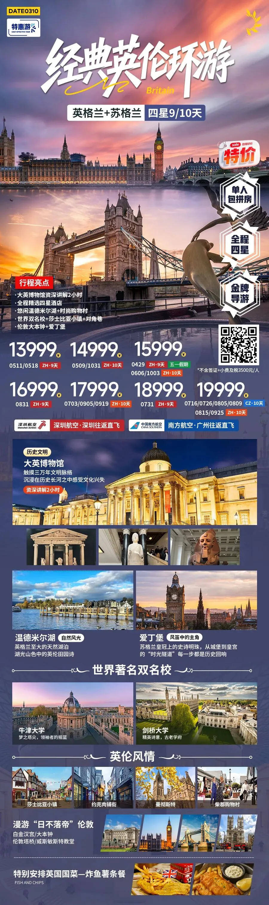 经典英伦环游四星9/10天