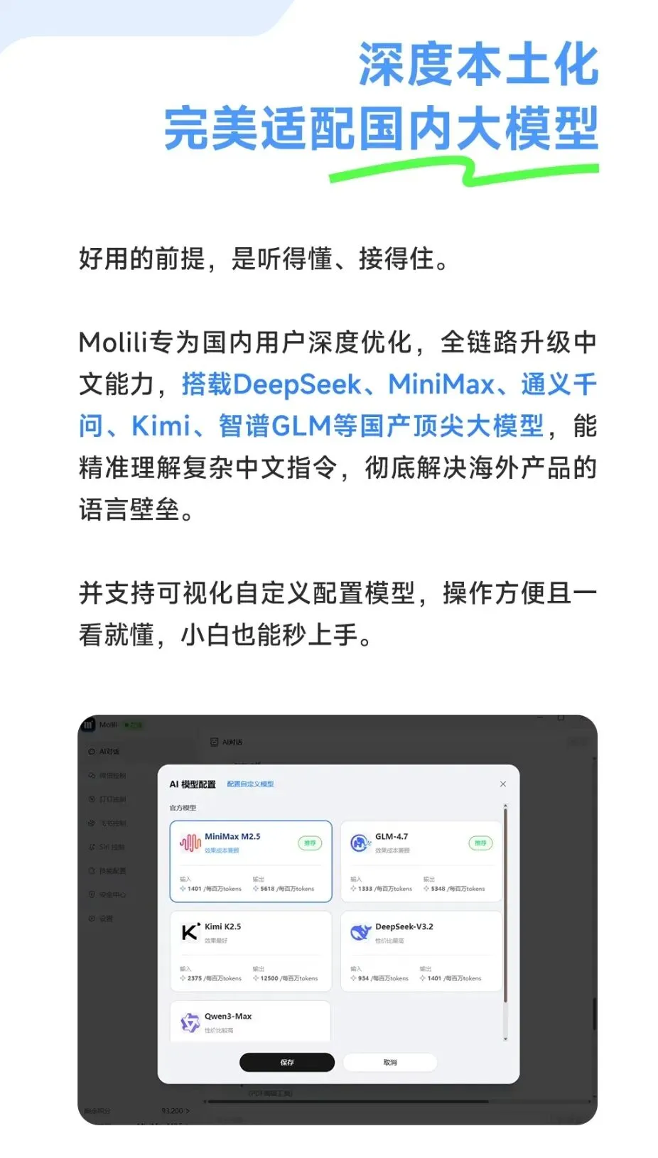 也是一样的,多模型自由切换:支持 10+ 主流 AI 模型,按需选择最合适的助手,也能在聊天工具软件使用Molili。