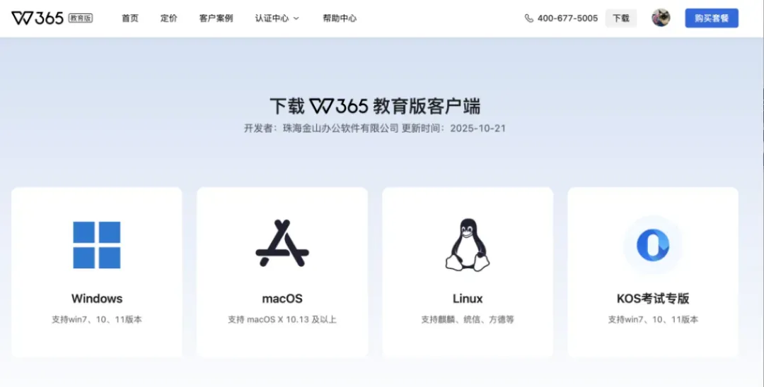 请前往WPS 365官方网站下载最新版本:https://365.wps.cn/edu/download点击“下载教育版客户端”(可下载整合版,体验完整的应用功能)。