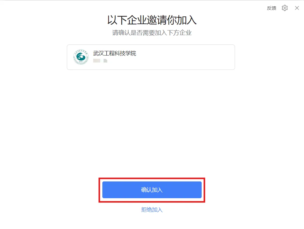 3.在邀请界面点击【确认加入】,即可激活登录并使用武汉工程科技学院专属账号。