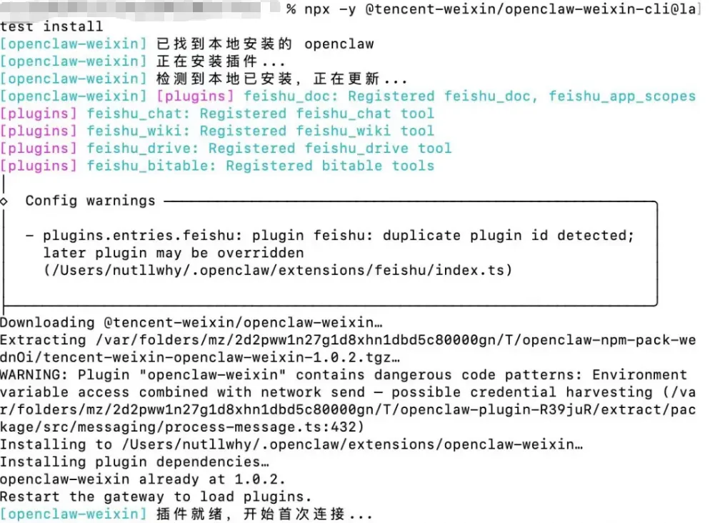 安装过程中会弹一个黄色警告,说插件有”环境变量 + 网络发送”行为。