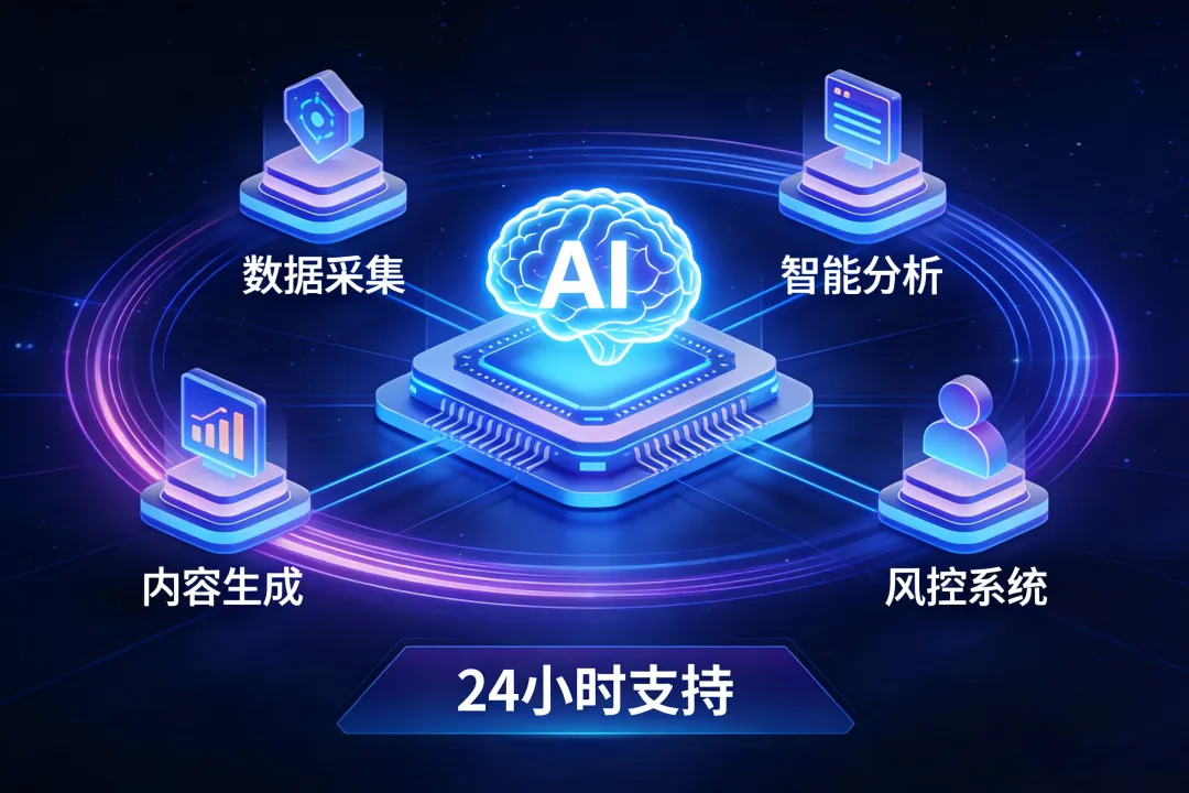 自动采集、智能分析、内容+风控系统+24小时团队支持
