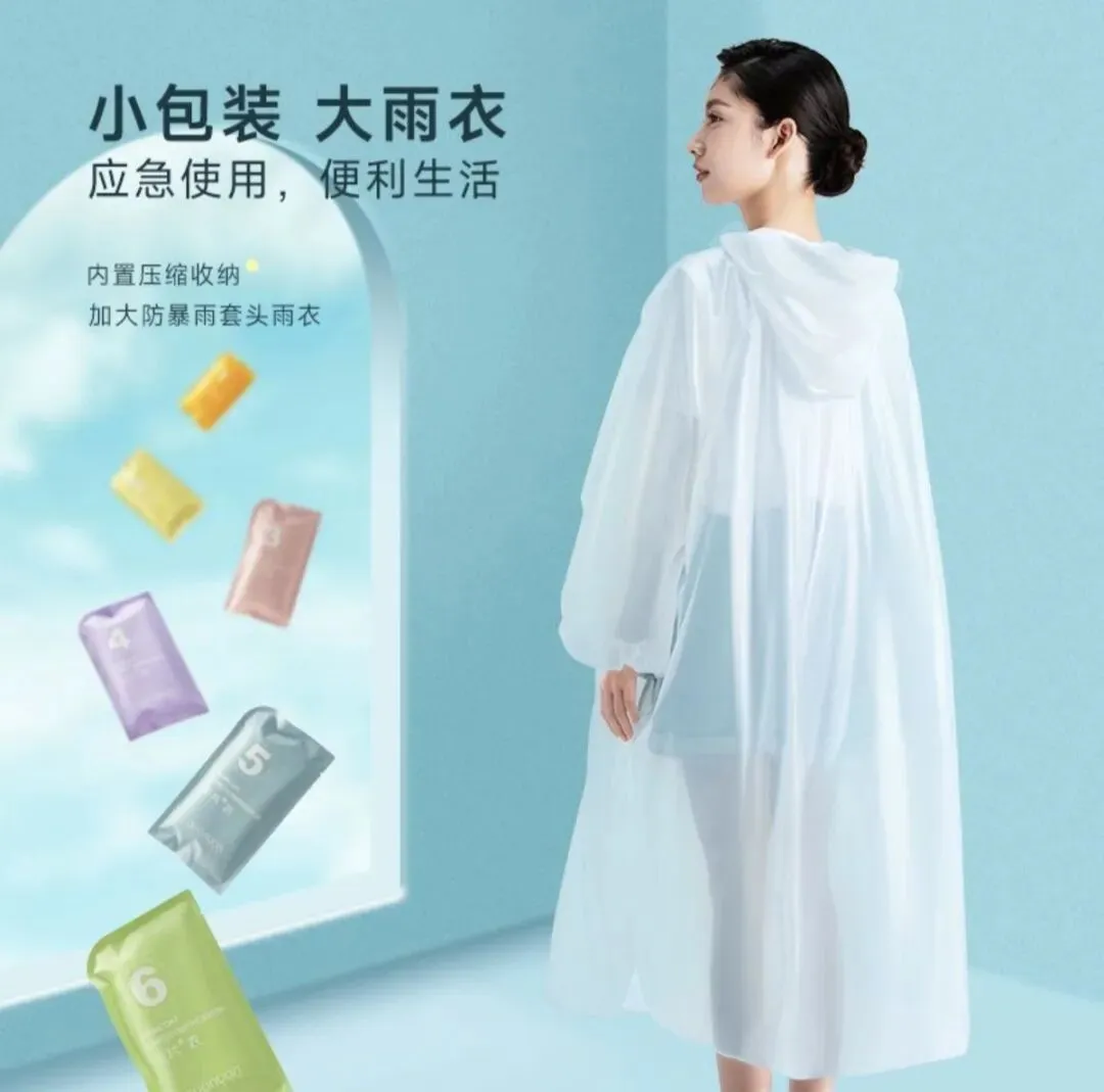 出行路上,突如其来的降雨让人措手不及。厚重的传统雨衣占空间、难携带,折叠伞遇大风便失去作用,临时购买的劣质雨衣轻薄易破、防雨效果极差……