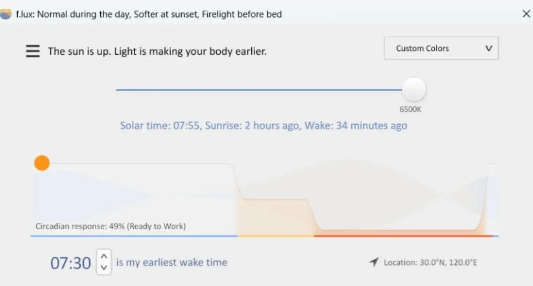 其实不用花大价钱买效果参差不齐的防蓝光眼镜,一款仅 1M 的轻量工具 f.lux 就能解决。它根据昼夜自动调节屏幕色温,用过的人几乎都成了忠实用户。