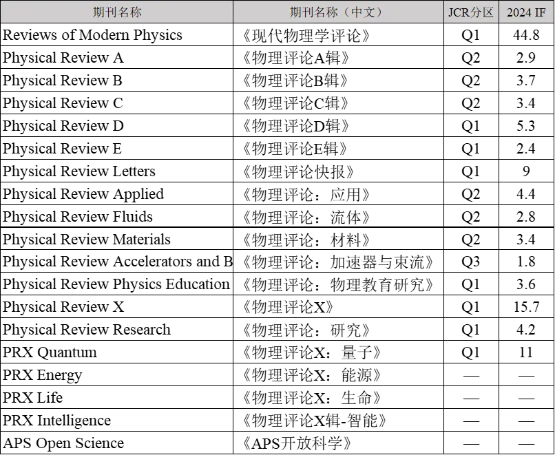 美国物理学会APS(The American Physical Society)成立于1899年,致力于促进物理知识发展和传播。APS出版的所有物理评论系列期刊分别是各专业领域最受尊重、被引用次数最多的科技期刊之一,在全球物理学界及相关学科领域的研究者中具有极高的声望。
