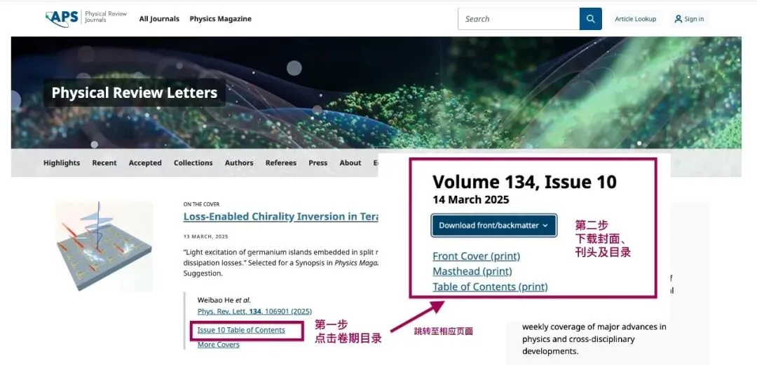 进入期刊页面,选择相应期卷,可查看并下载期刊封面、刊头、目录信息。