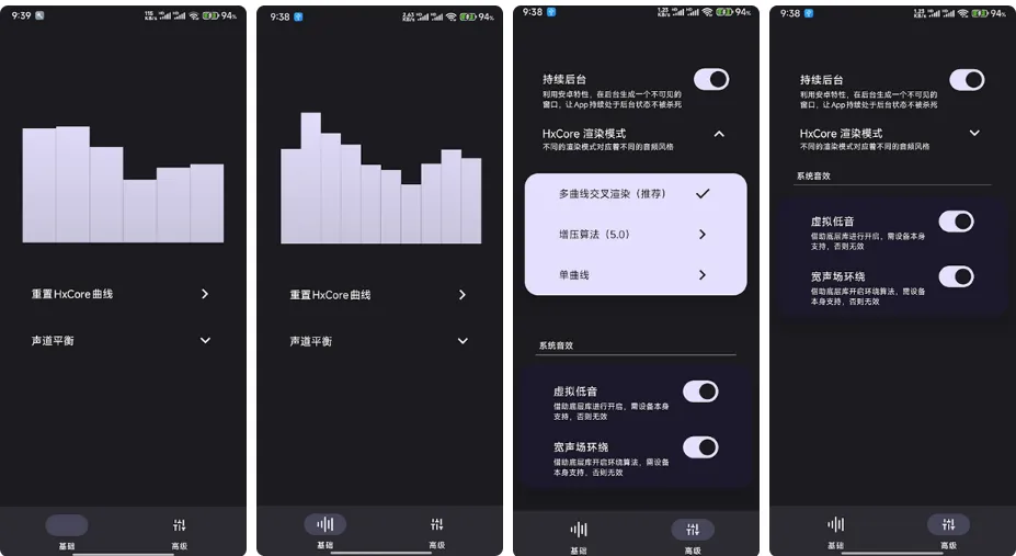 通过HXAudioapp,用户可以测量周围环境中的声音,调整设备的各种参数以达到最佳监控状态,并将听到的音频转换为文本信息。还将独特的HxCore曲线算法与Android动态处理API相结合。将次级音频渲染叠加在10段均衡器之上,可显著提高扬声器、耳机和扬声器的低频动态性能。同时,在HXAudioapp软件中,用户可以根据需要在电子音乐和人声等智能模式之间切换,或通过自定义dax文件参数进行深度调音。