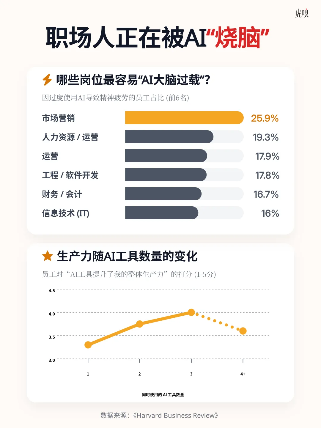 波士顿咨询集团最新研究显示,在需要高度监督AI运作的场景中,员工精神消耗平均增加14%,信息过载感提升19%。作为带领30人市场团队的管理者,我必须严肃提醒:AI工具的使用正在经历从”赋能红利”到”认知过载”的临界点,而市场人首当其冲。